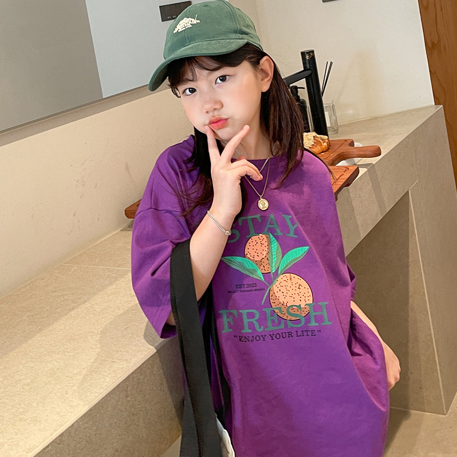 • 오렌지 짧은 소매-보라색
