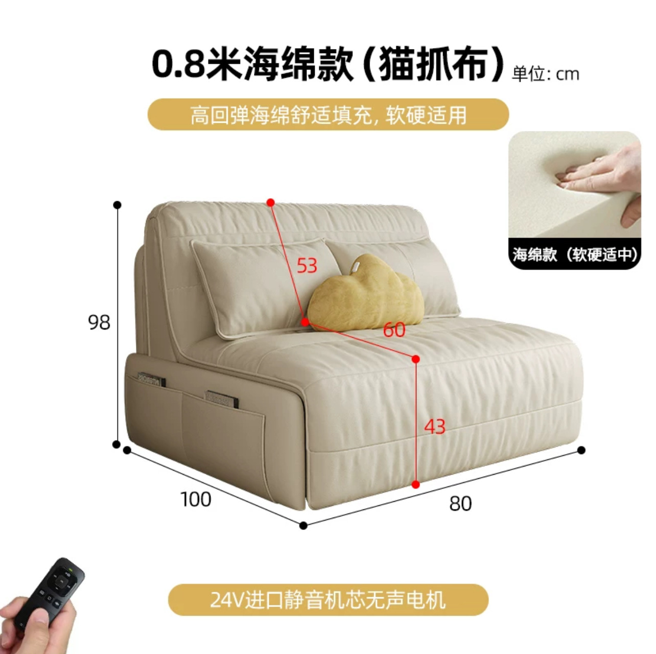 지능형 전기 원격 제어 소파 다기능 이중 사용 접이식 작은 아파트 발코니 거실 침실 게으른 소파