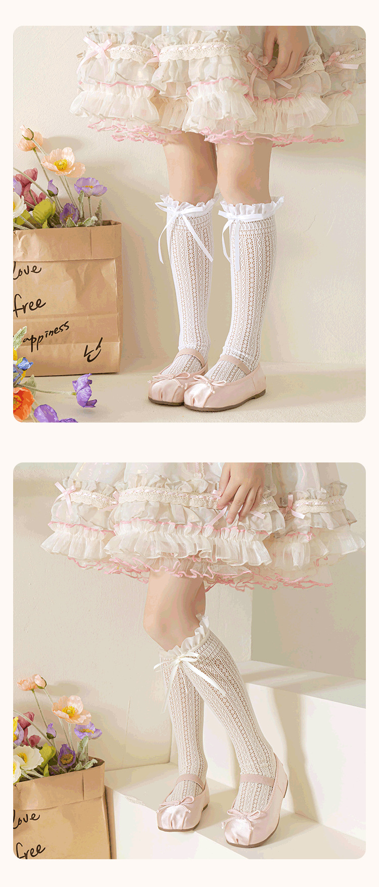 소녀 로리타 미드 양말 여름 얇은 메쉬 레이스 공주 양말 어린이 긴 양말 아기의 송아지 양말