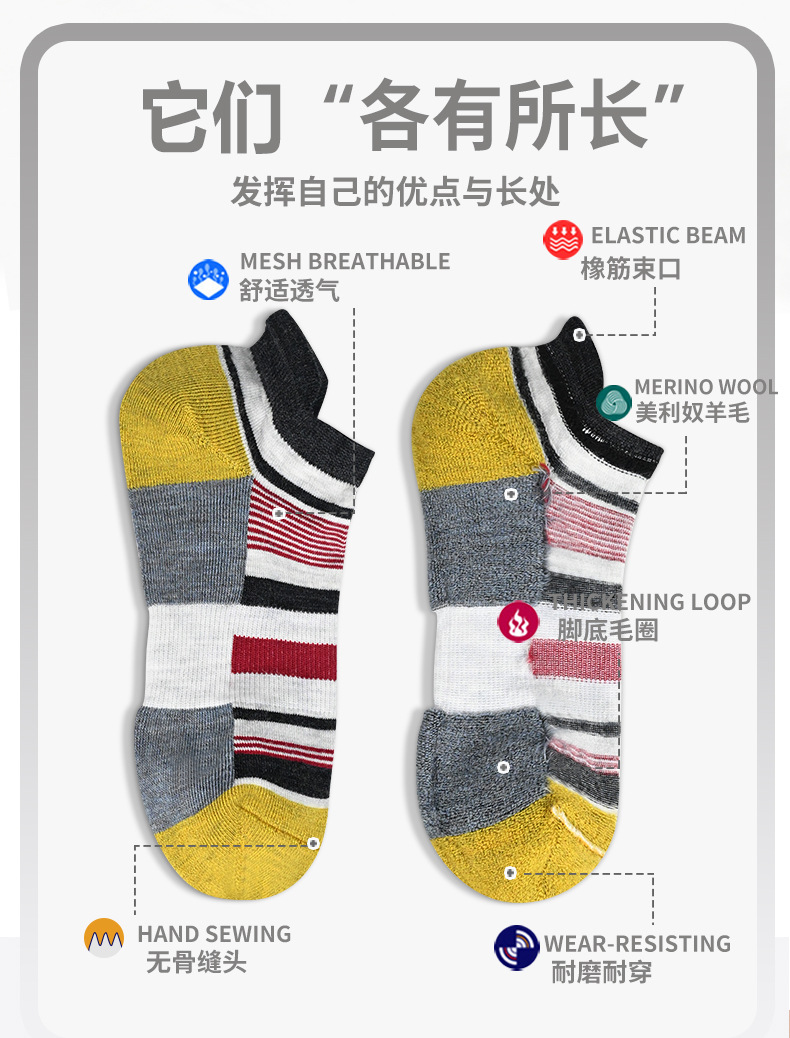 여름 하이킹 양말, 밑창 테리 90% 메리노 울 양말, 하이킹 및 캠핑용 얕은 입 짧은 튜브 하이킹 양말스토어 가기
