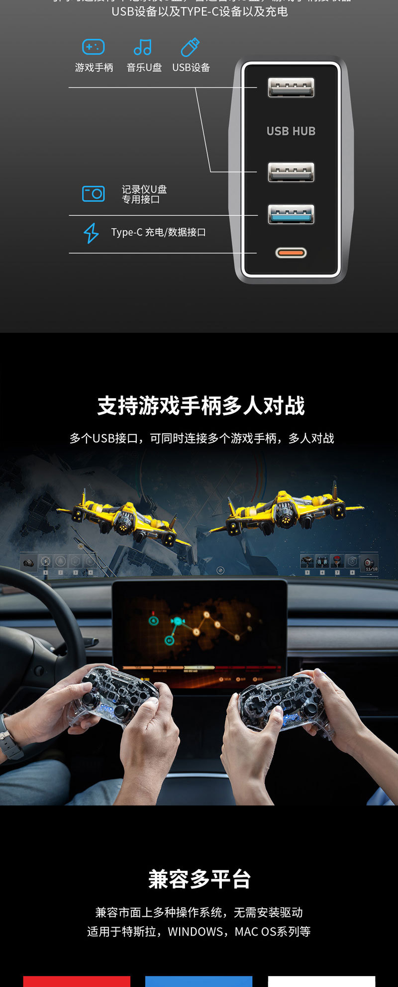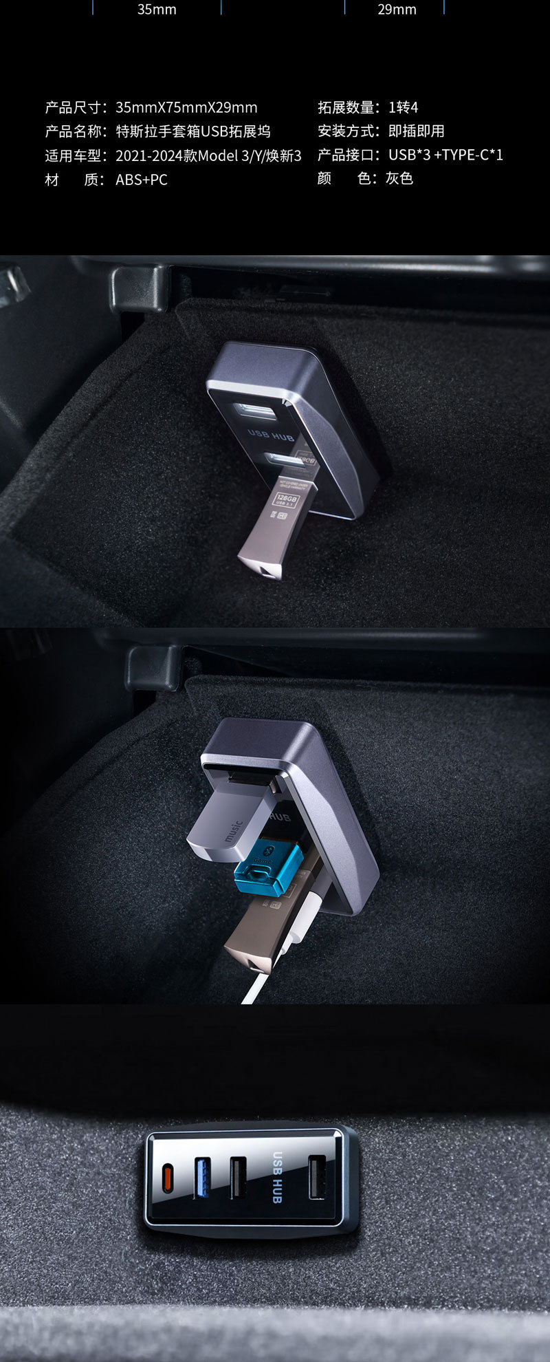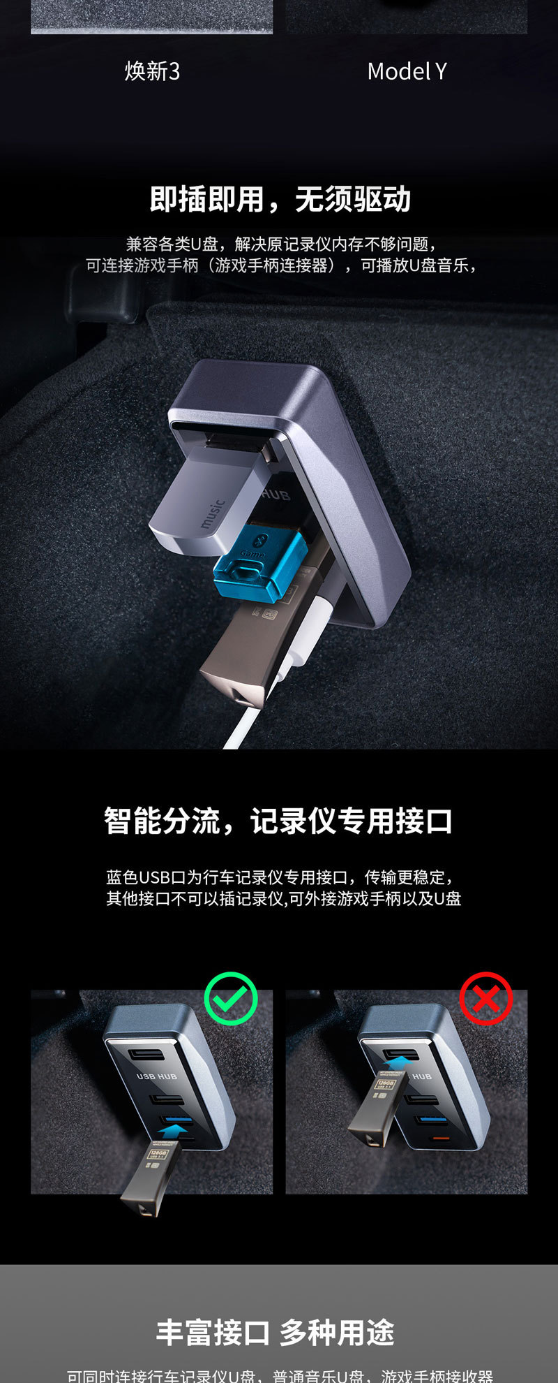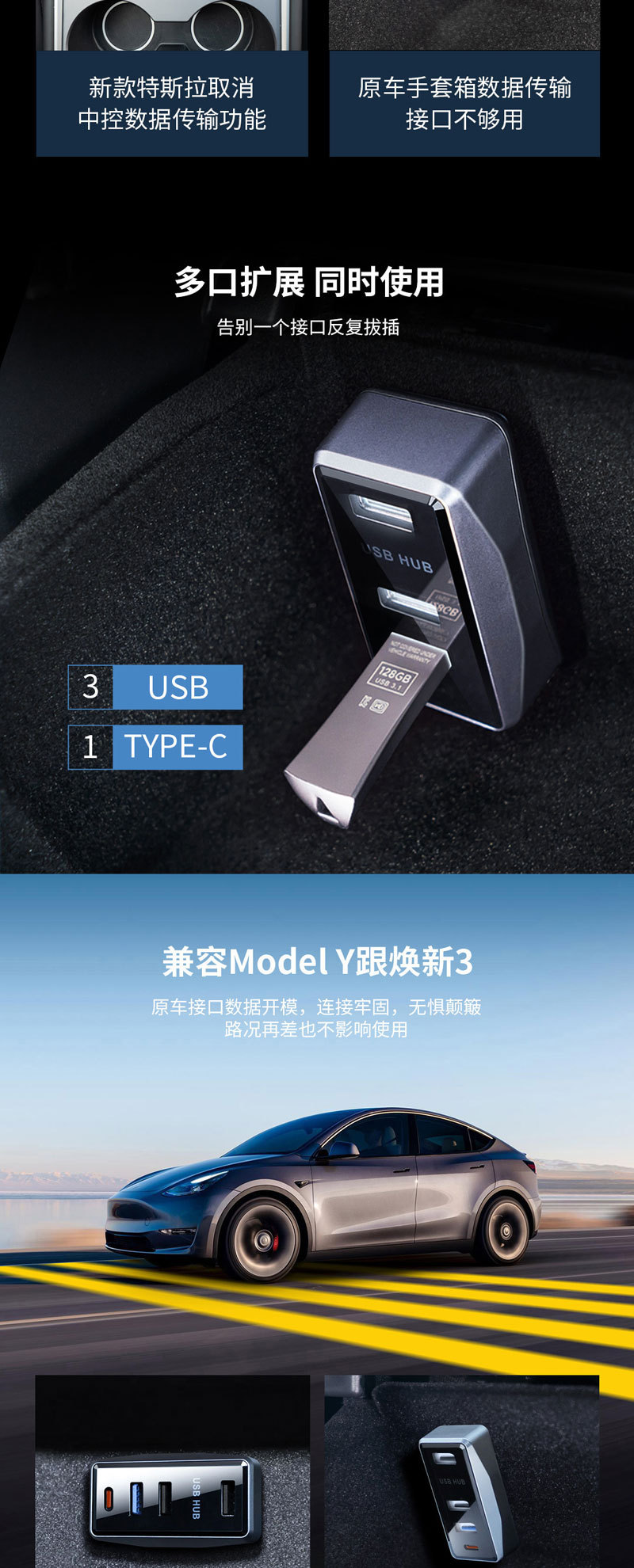 테슬라 확장 도킹 액세서리 모델 Y/Huanxin 3 글러브 박스 USB 도킹 허브 어댑터에 적합스토어 가기
