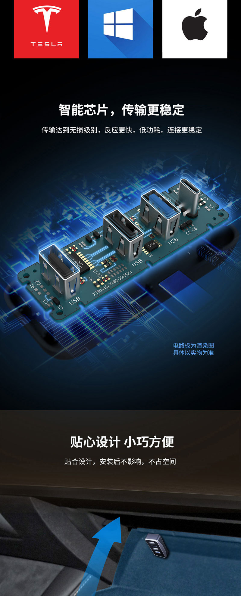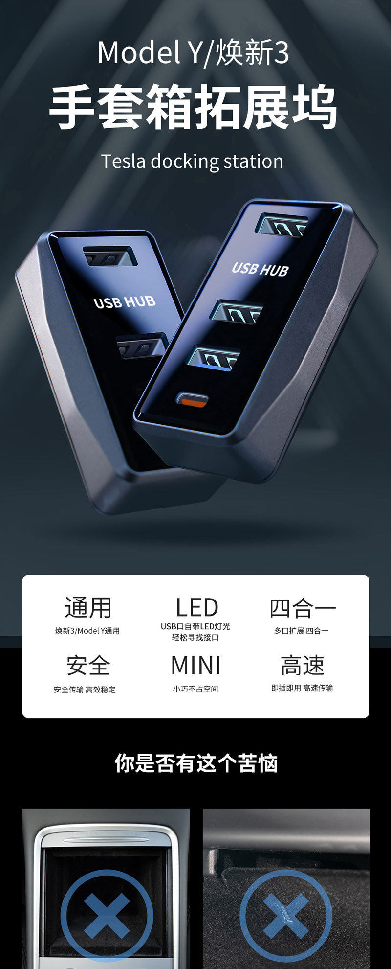 테슬라 확장 도킹 액세서리 모델 Y/Huanxin 3 글러브 박스 USB 도킹 허브 어댑터에 적합