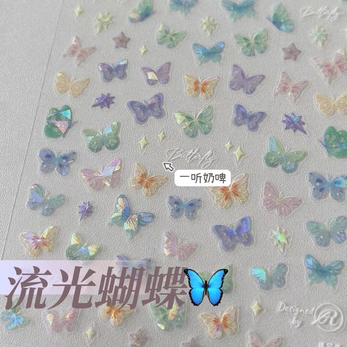작은 빨간 책 폭발 나비 날개 스트리밍 스티커 고급 플랫 네일 아트 스티커 다채로운 나비 요정 네일 스티커