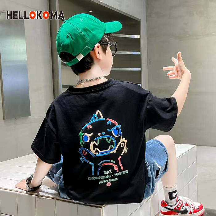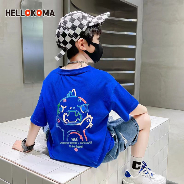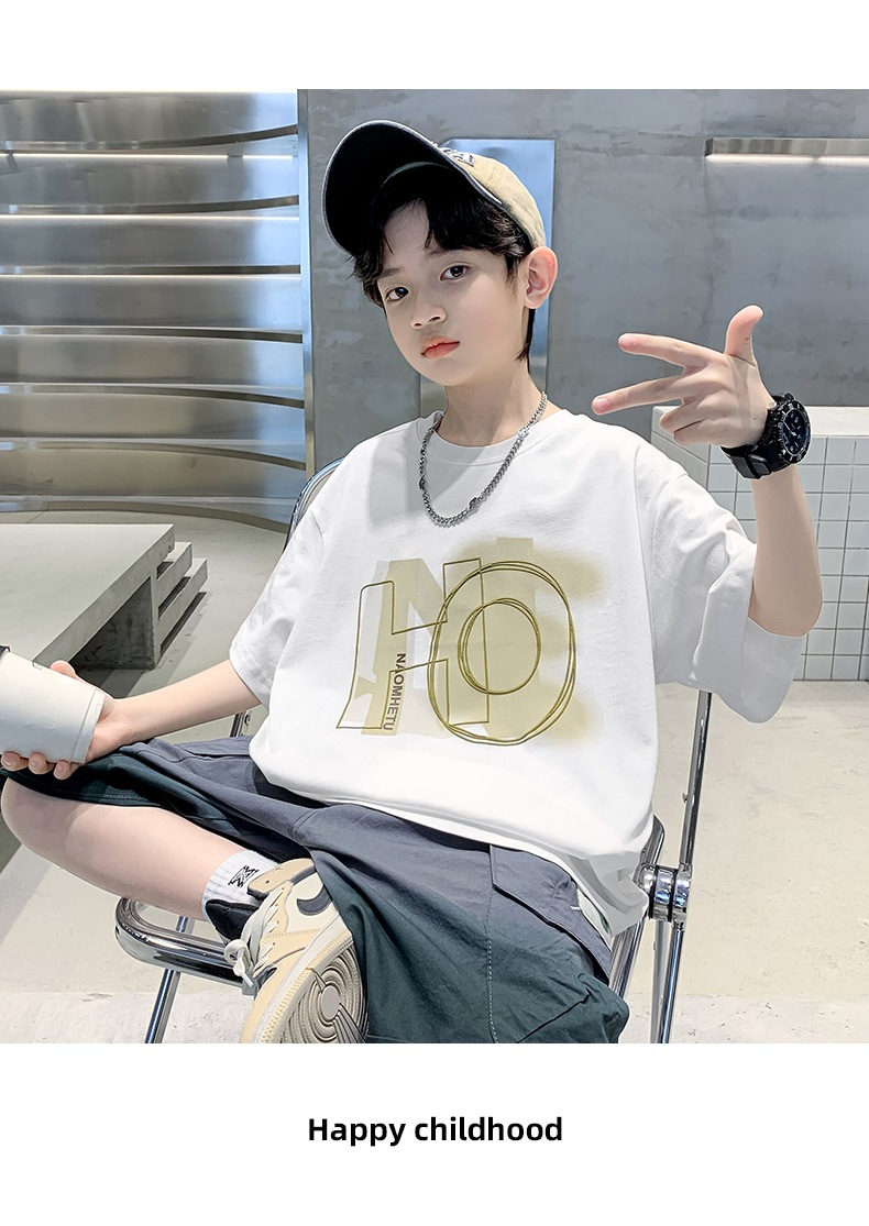 남아 여름 반팔 티셔츠 2026 신상 순면 상의 중대형 아동 여름 트렌드 브랜드 남아 반팔 티셔츠