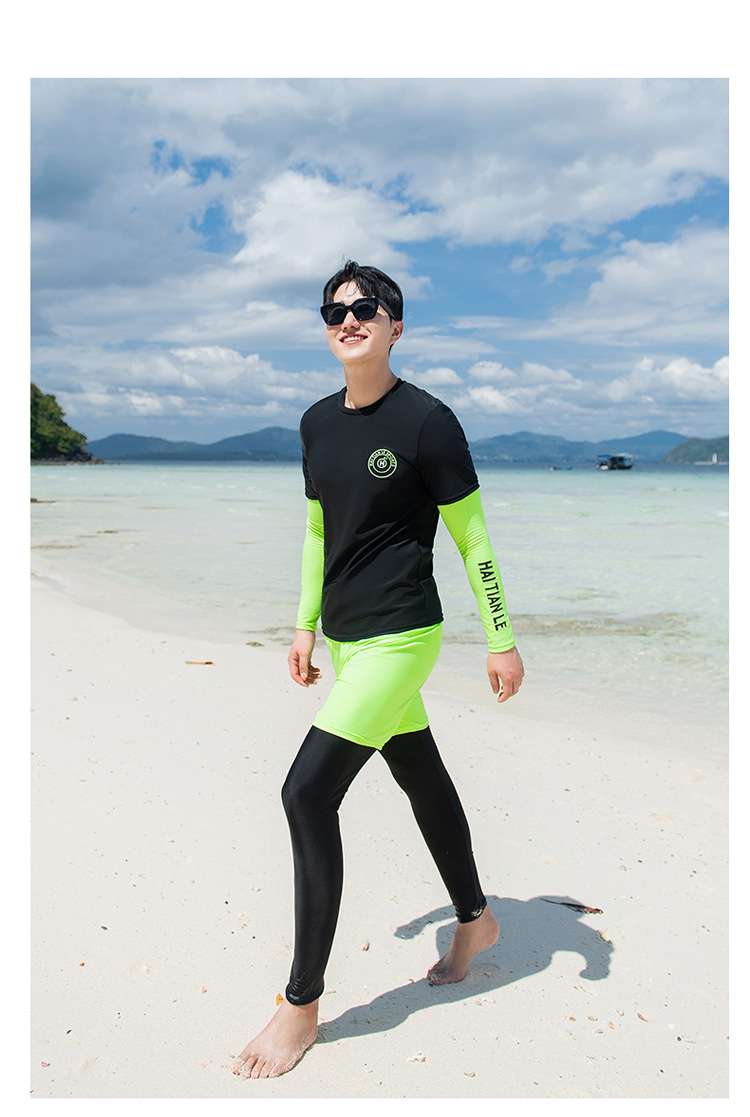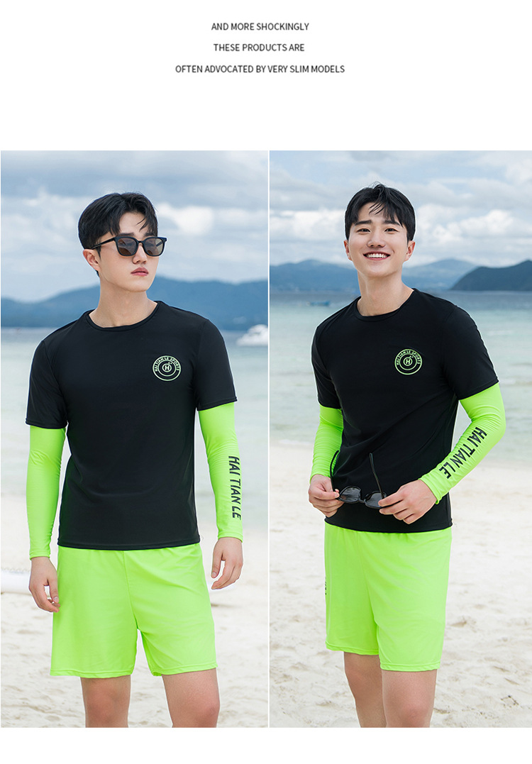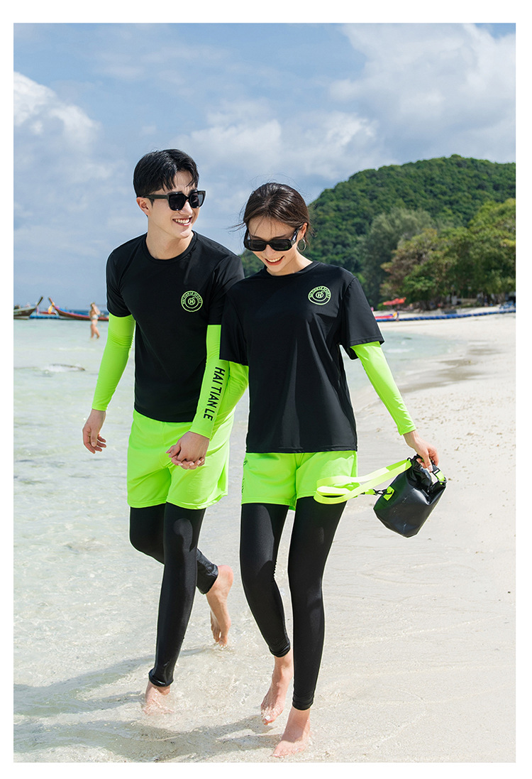 커플 의상 새로운 남성과 여성의 수영복 분할 긴 소매 바지 세트 패션 스포츠 버전 보수적 인 배꼽 슬림 도매