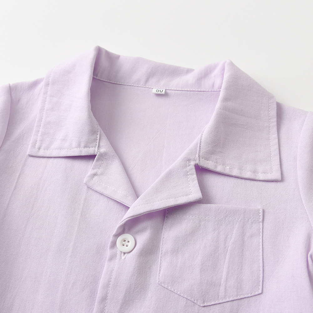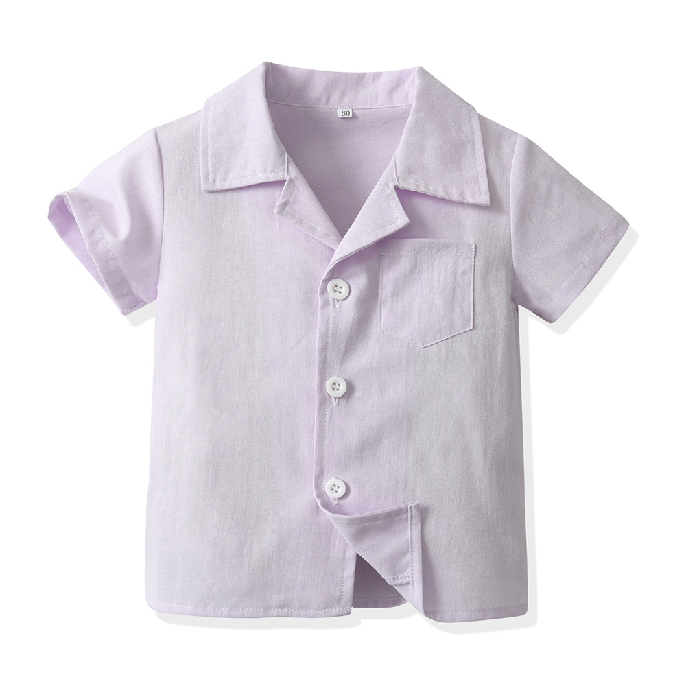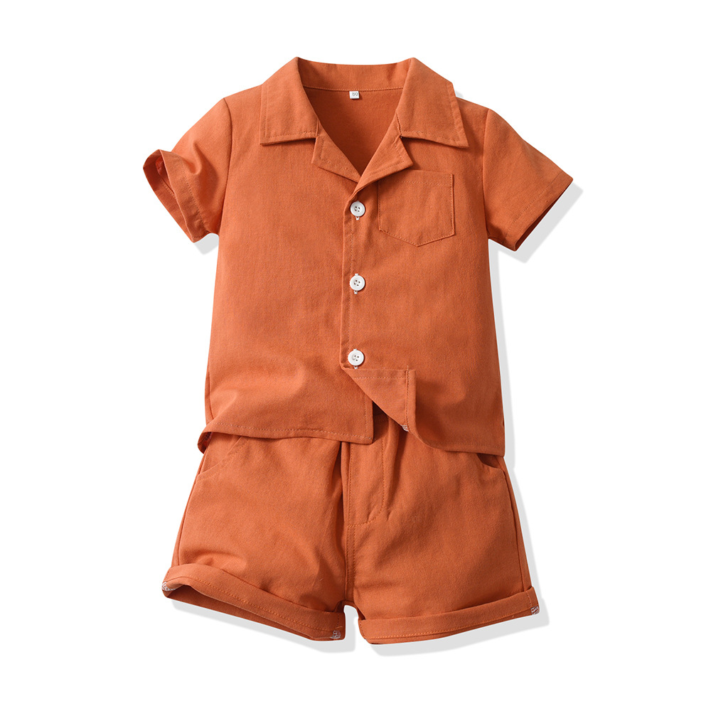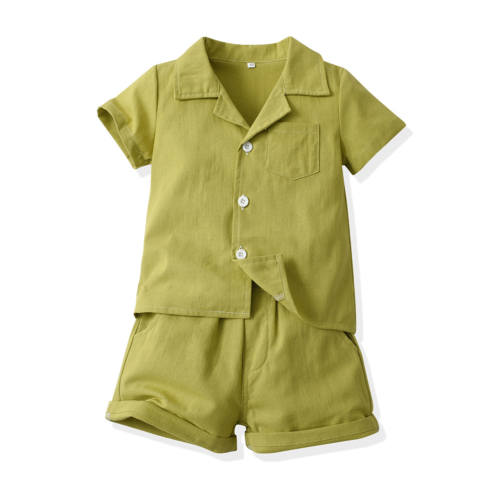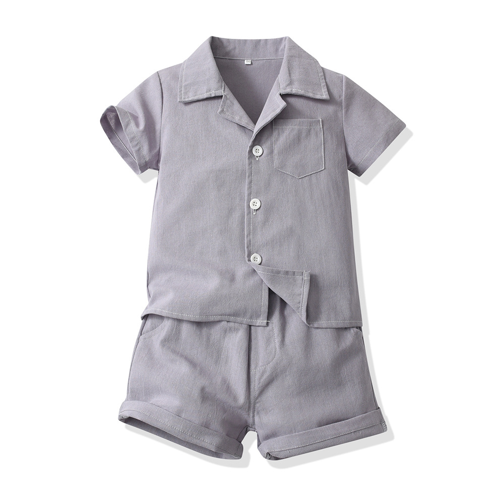 새로운 여름 소년 세트 한국 스타일 랩 칼라 스택 캐주얼 반팔 셔츠 반바지 투피스 키즈 세트