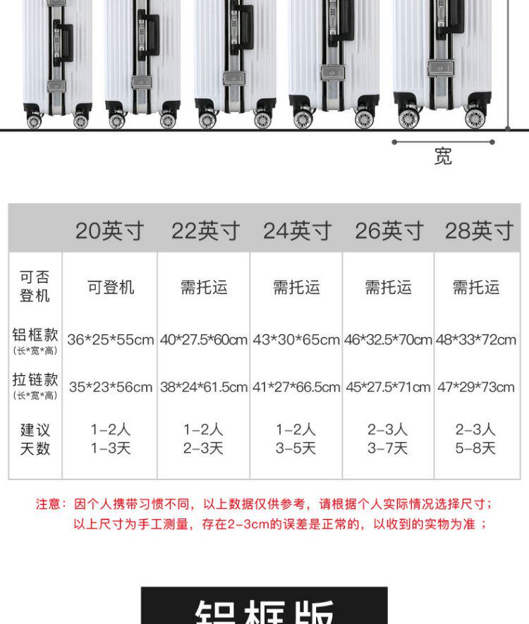 알루미늄 프레임 수하물 케이스 학생 수하물 케이스 남성 비밀번호 탑승 케이스 20 인치 작은 가죽 케이스 24 새로운 가방 여성스토어 가기