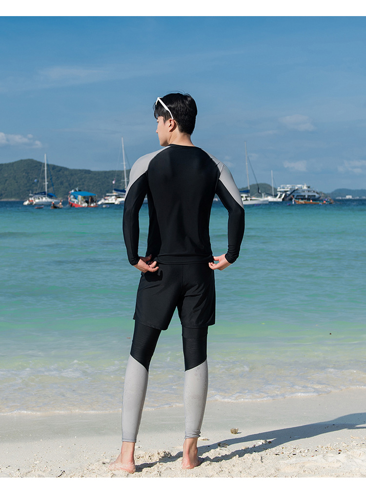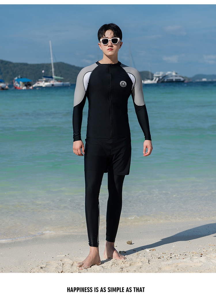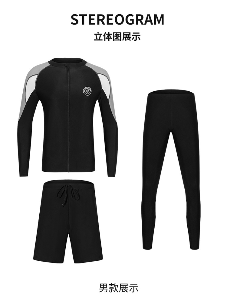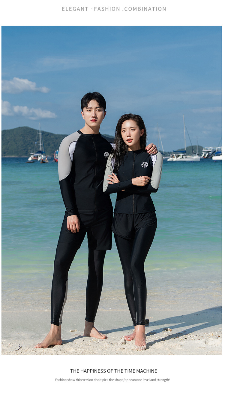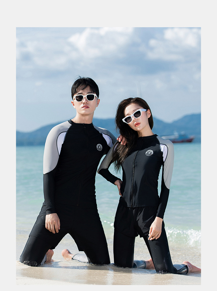 분할 긴 소매 바지 세트 커플 수영복 패션 유럽과 미국의 컬러 접합 스포츠 에디션 보수적 인 남성과 여성의 도매 수영복스토어 가기