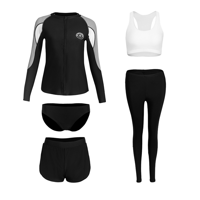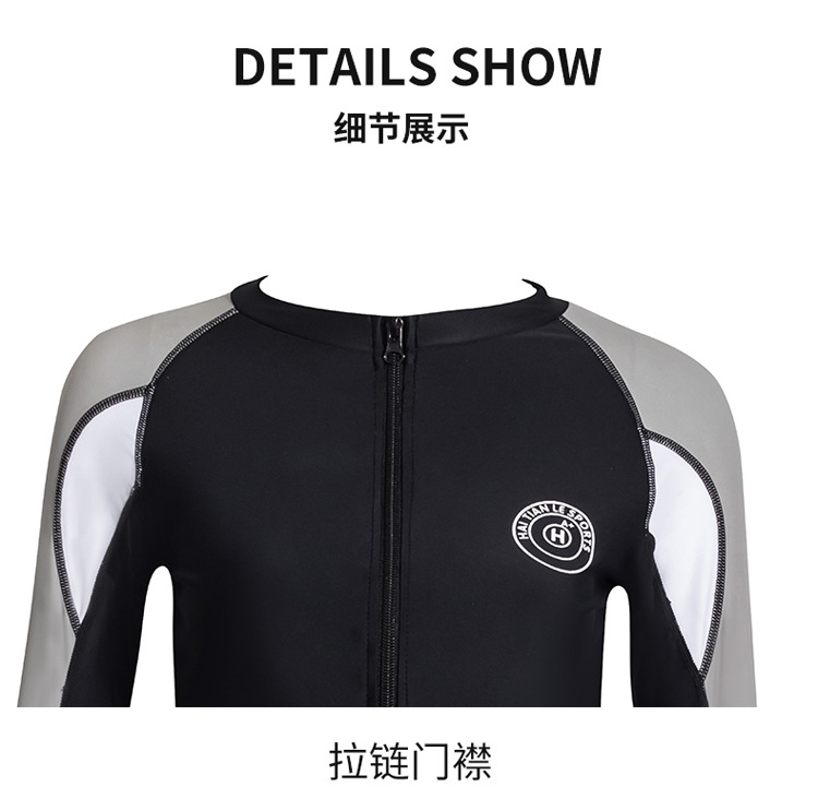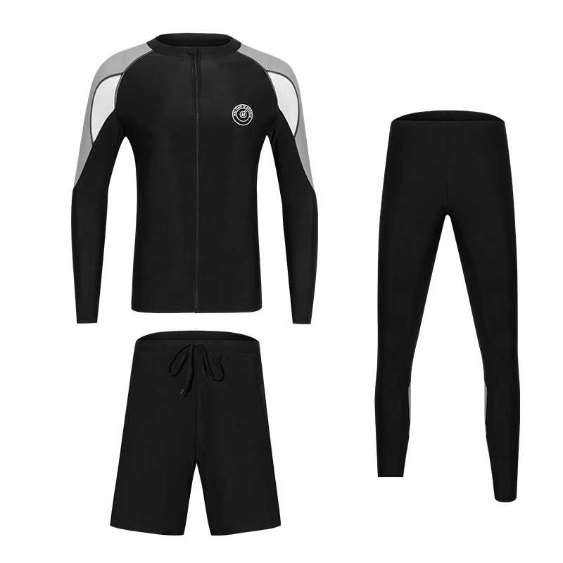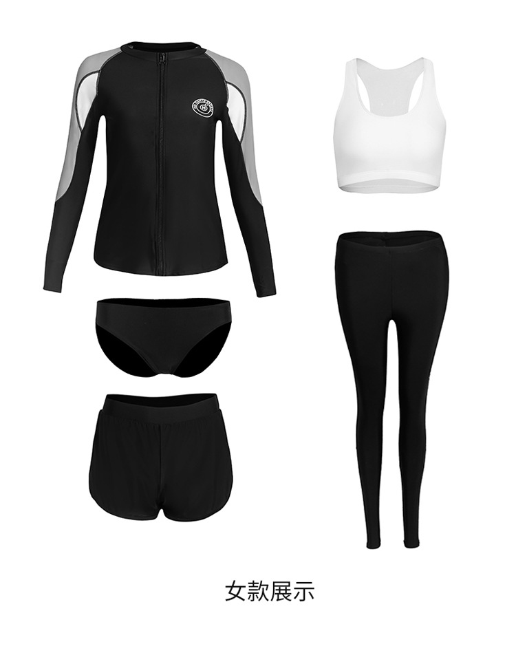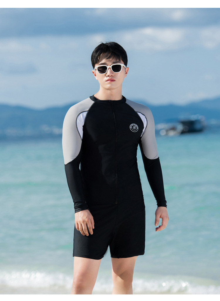 분할 긴 소매 바지 세트 커플 수영복 패션 유럽과 미국의 컬러 접합 스포츠 에디션 보수적 인 남성과 여성의 도매 수영복스토어 가기