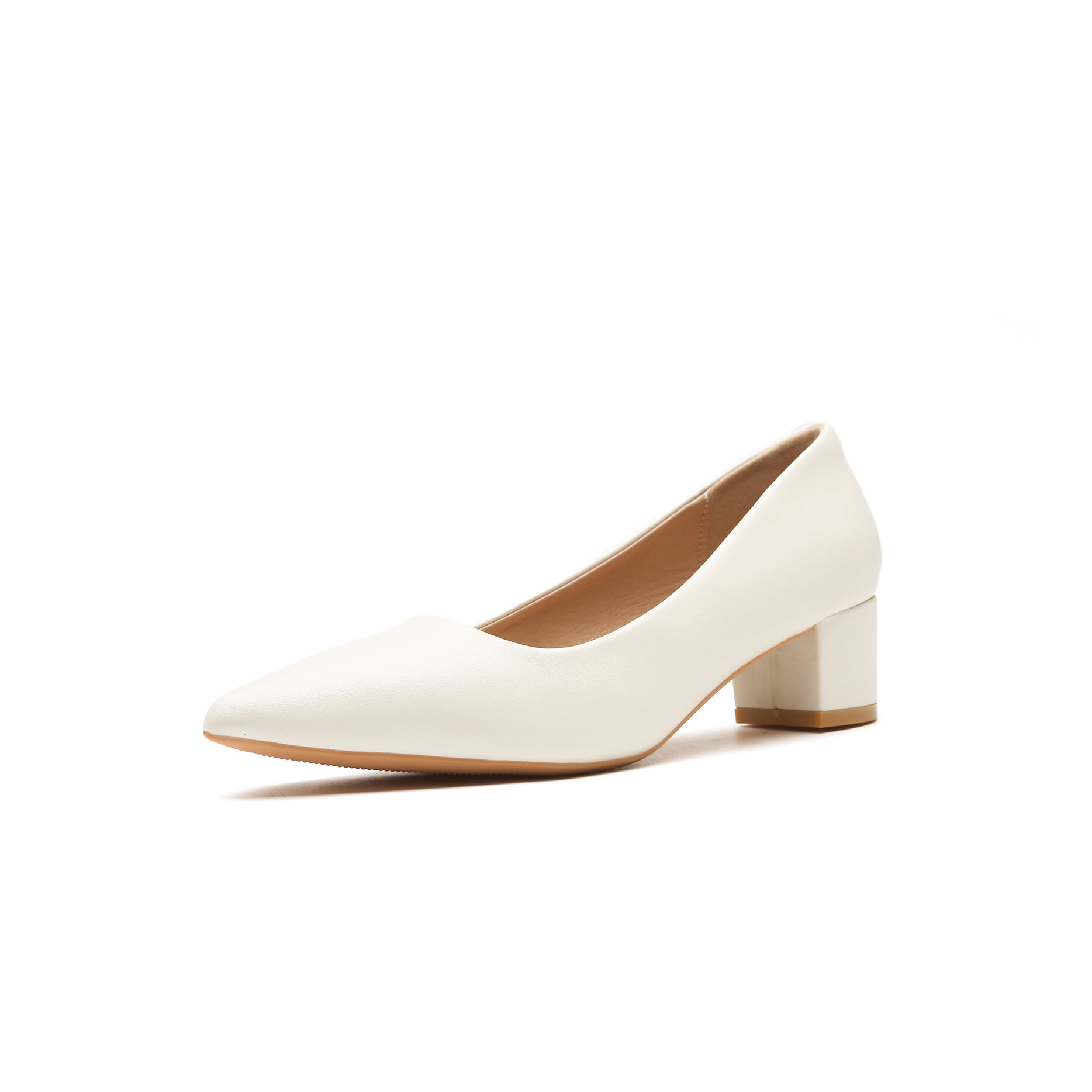 555- 85m 흰색 하이힐 여성 여름 새로운 기질 다목적 통근 인터뷰 전문 지적 발가락 두꺼운 뒤꿈치 작업 신발스토어 가기