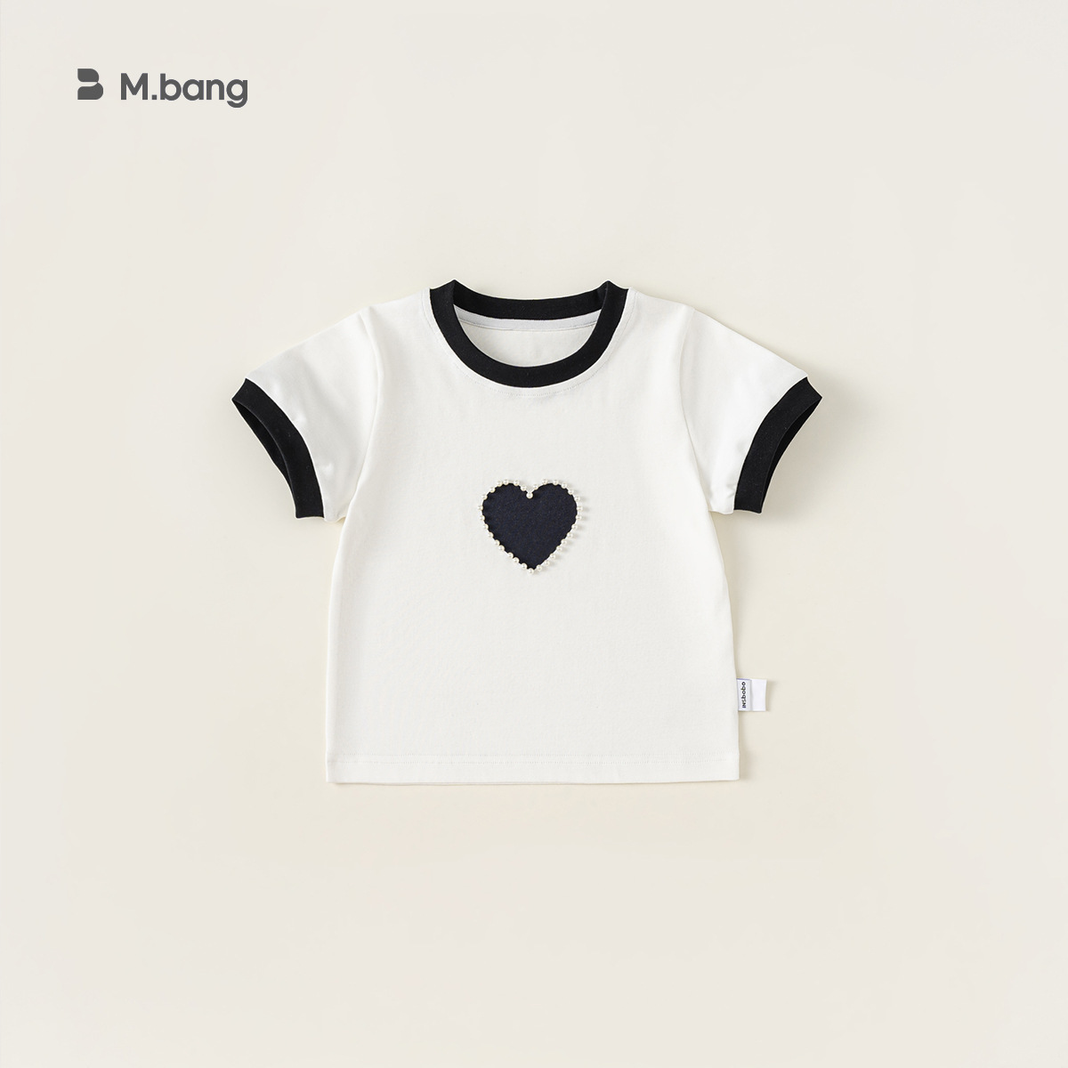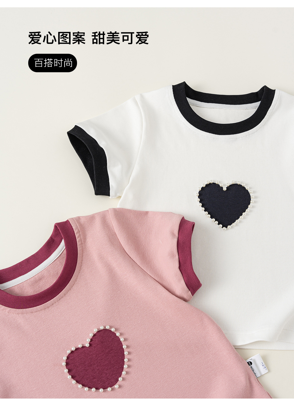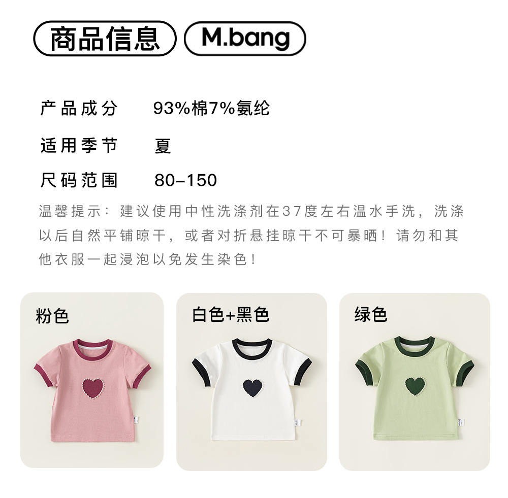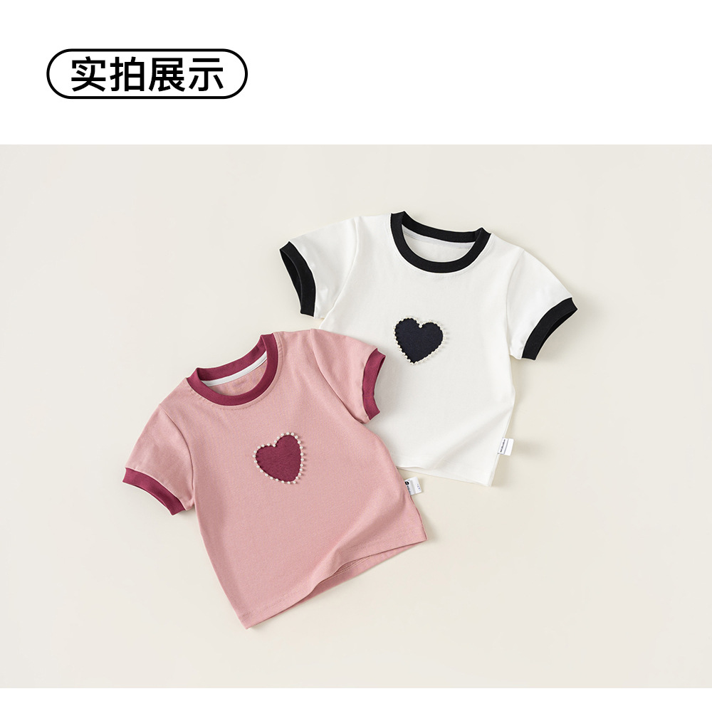 Bangxuan 여아용 달콤한 하트 비즈 장식 티셔츠 아동용 반팔 2026 여름 아동복 티셔츠 XY24100스토어 가기