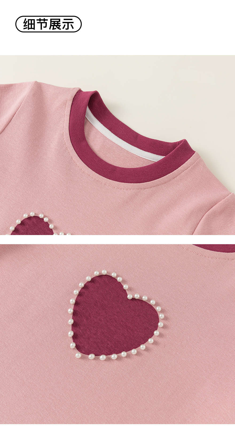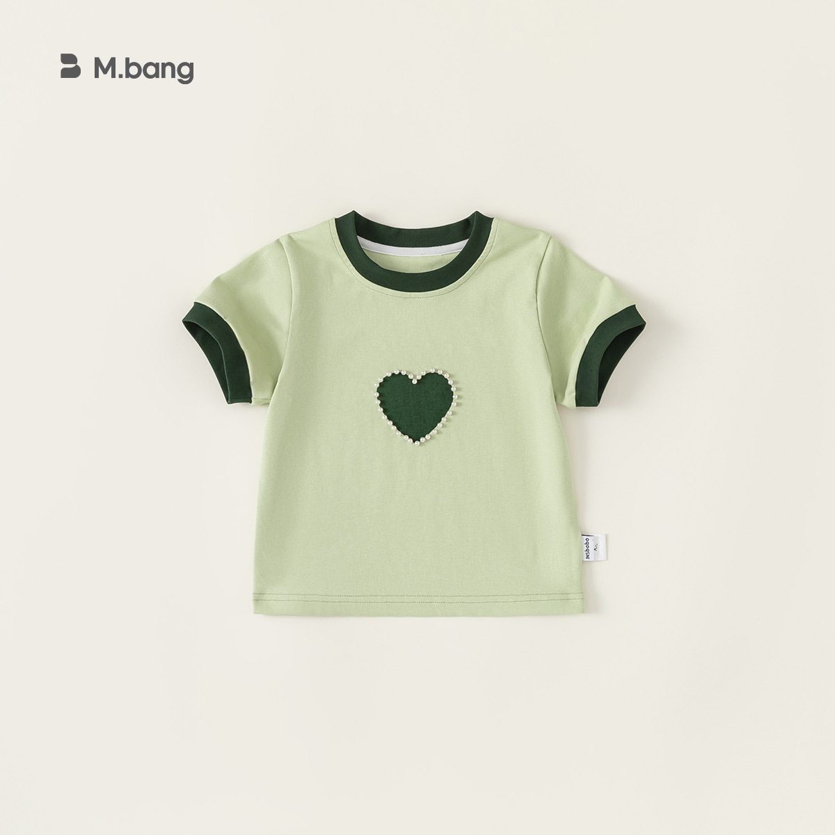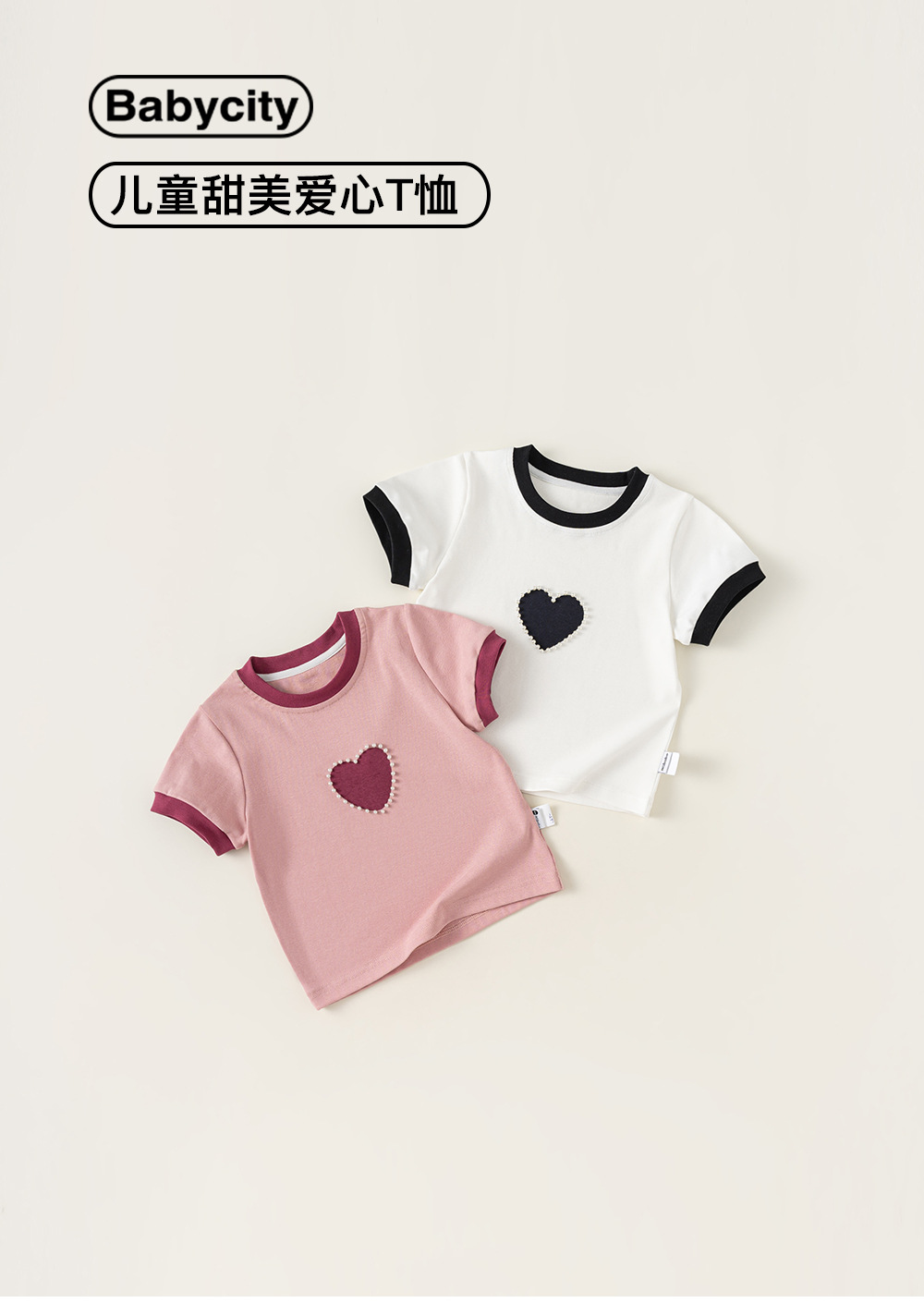 Bangxuan 여아용 달콤한 하트 비즈 장식 티셔츠 아동용 반팔 2026 여름 아동복 티셔츠 XY24100스토어 가기