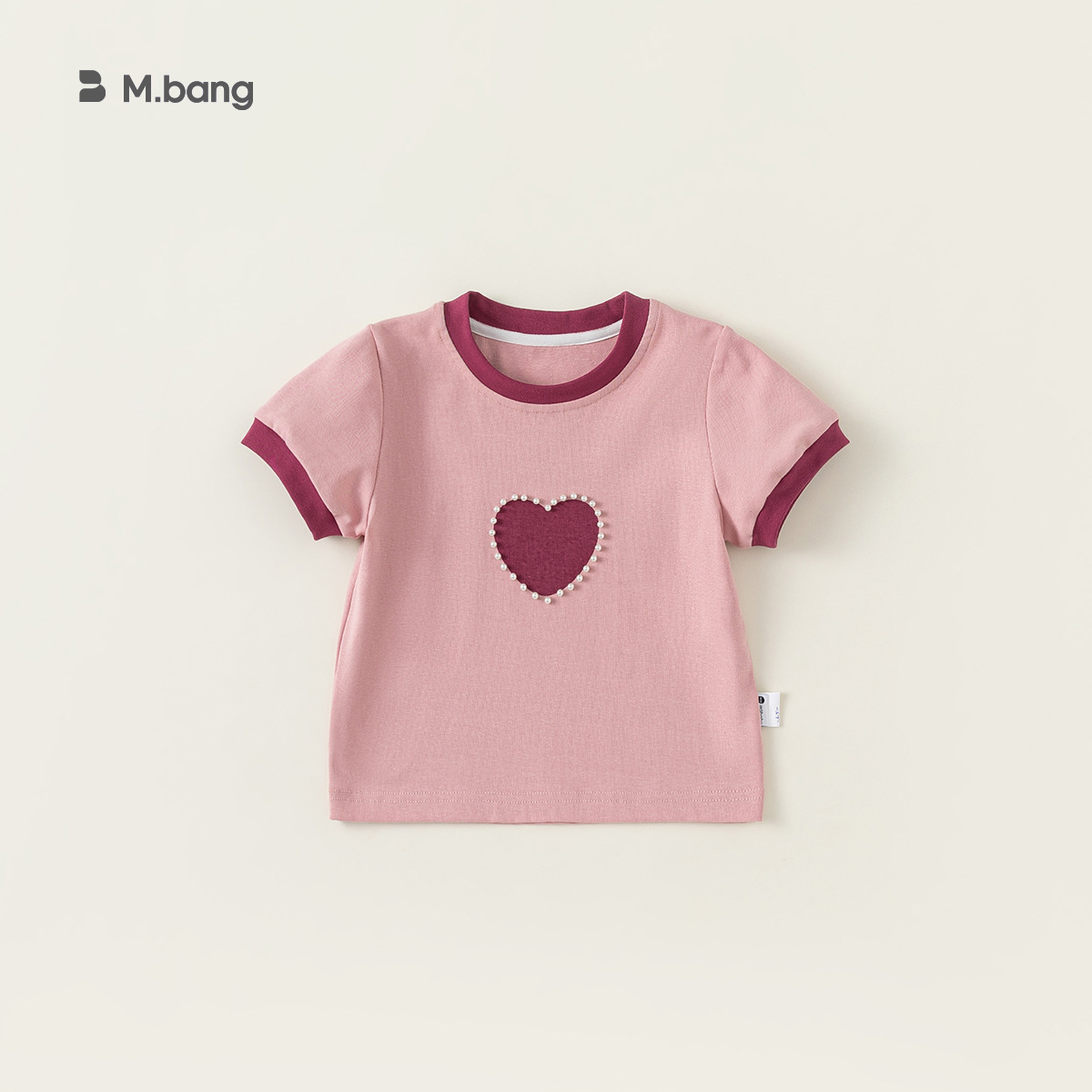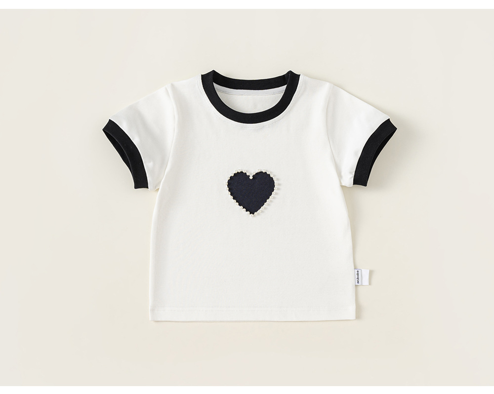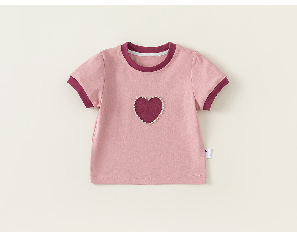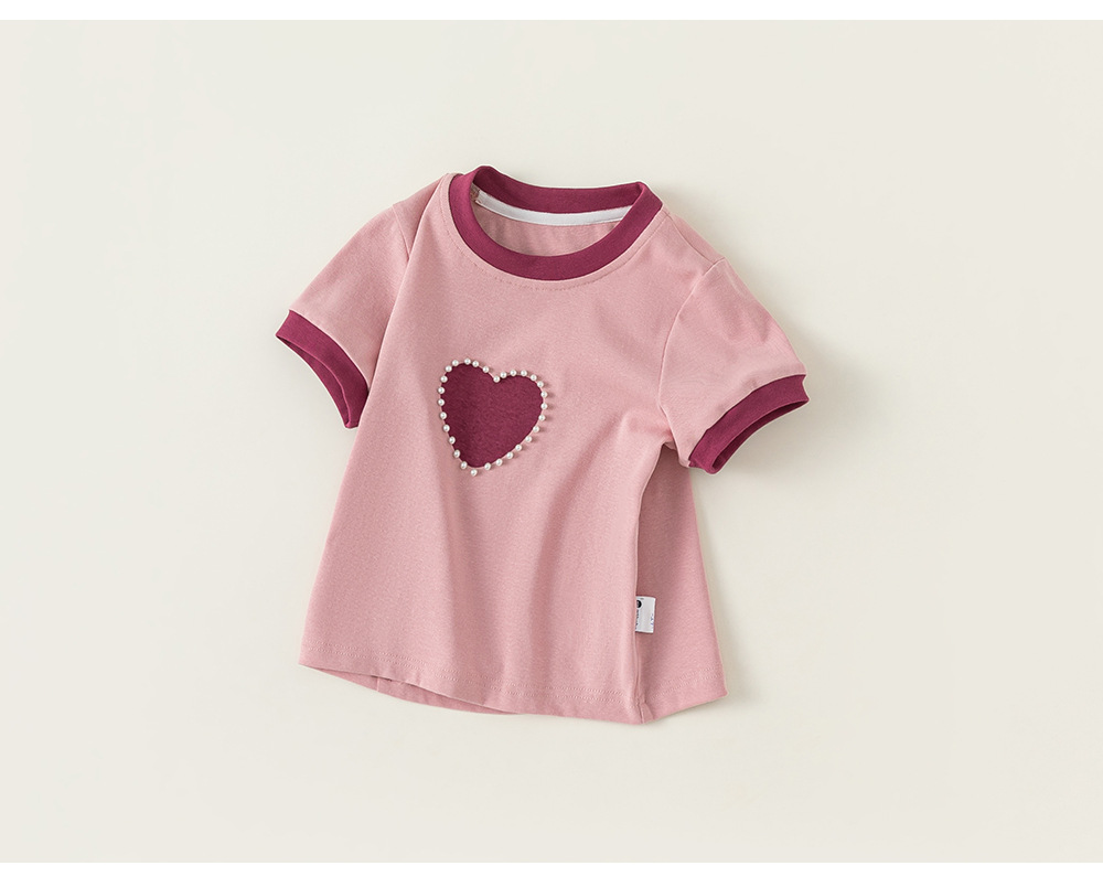 Bangxuan 여아용 달콤한 하트 비즈 장식 티셔츠 아동용 반팔 2026 여름 아동복 티셔츠 XY24100