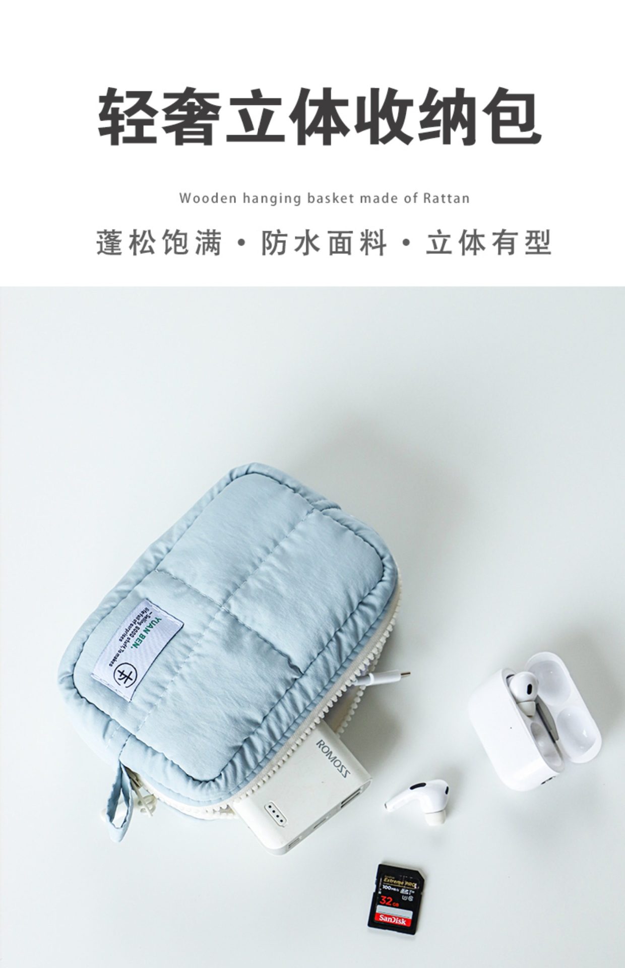• 업그레이드된 스카이 블루 기모 이어폰 파우치