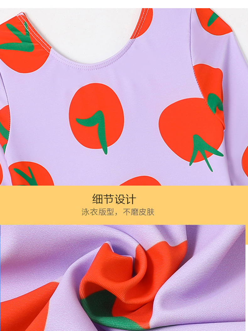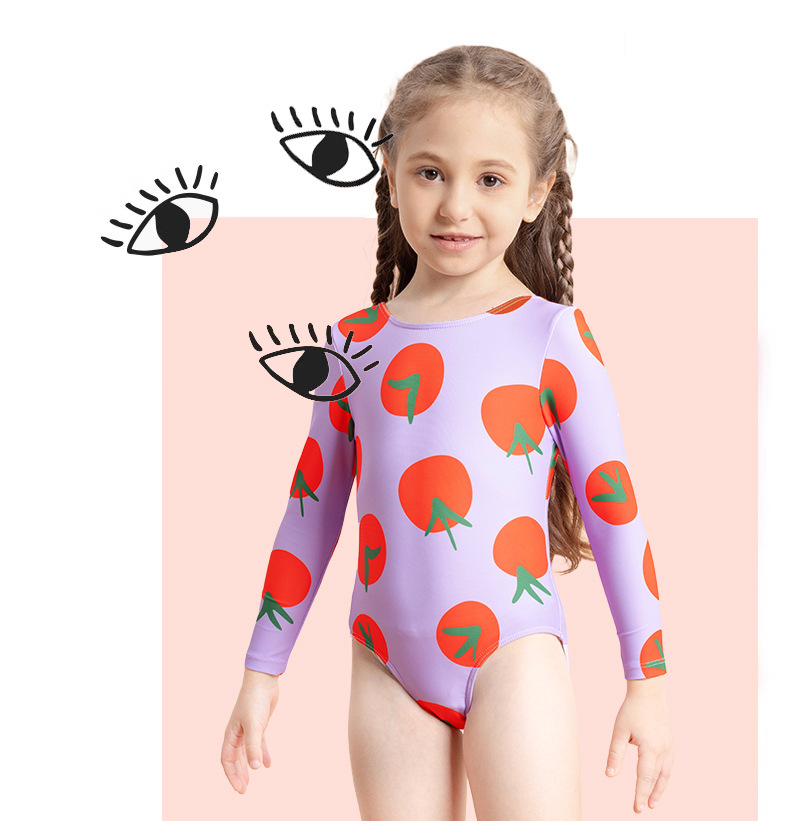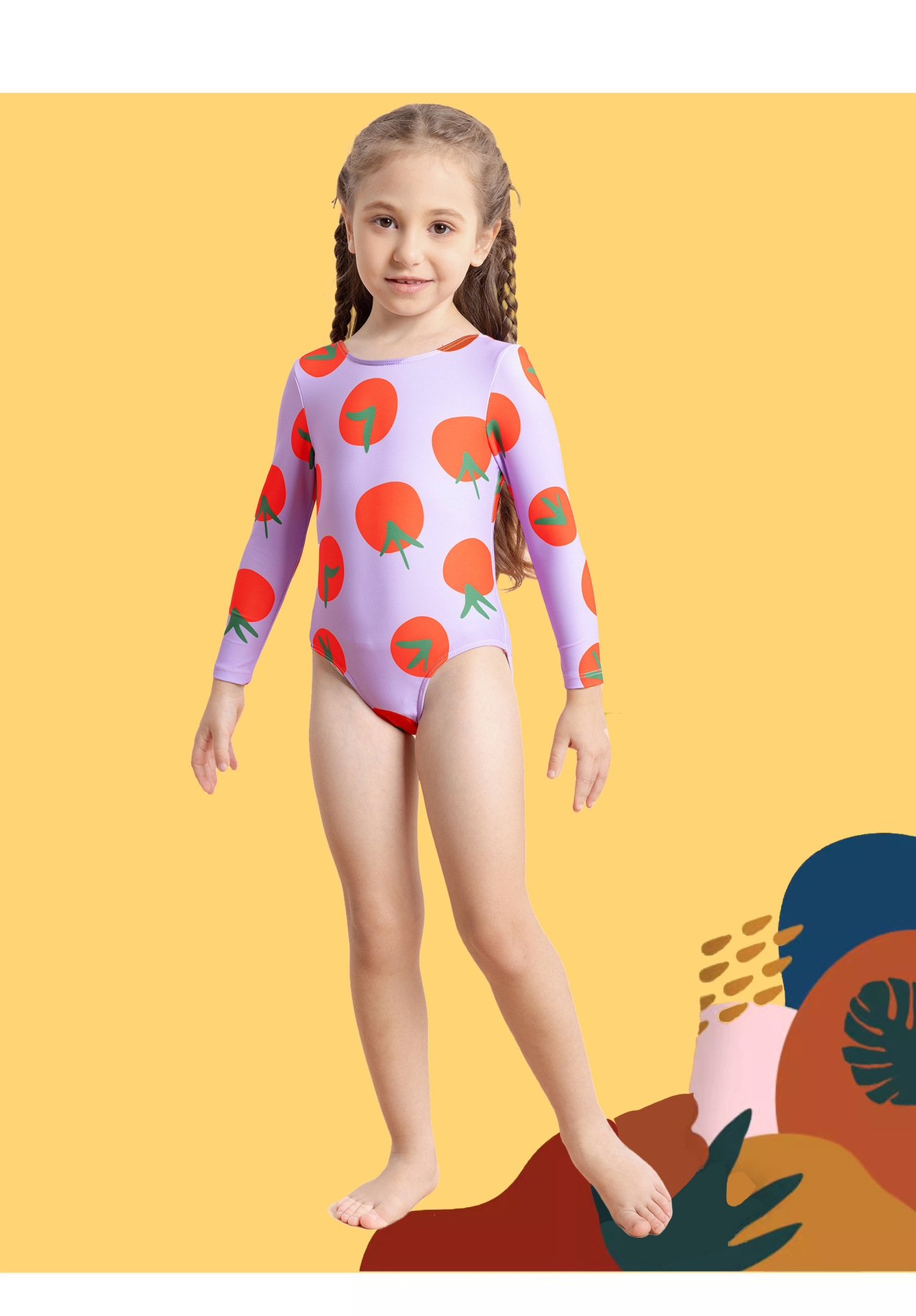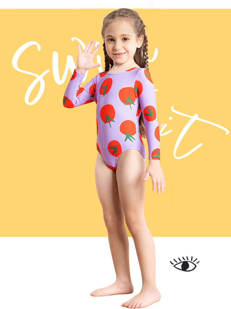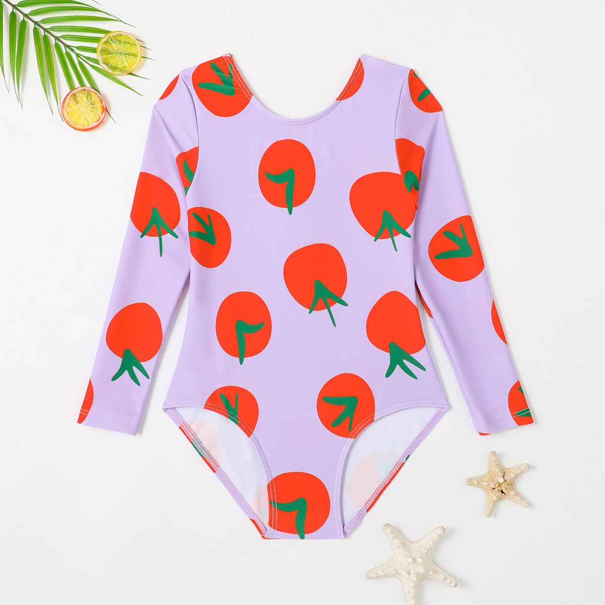 어린이 수영복 여자 긴팔 수영복 2024 새로운 토마토 인쇄 국경 선 스크린 여자 수영복