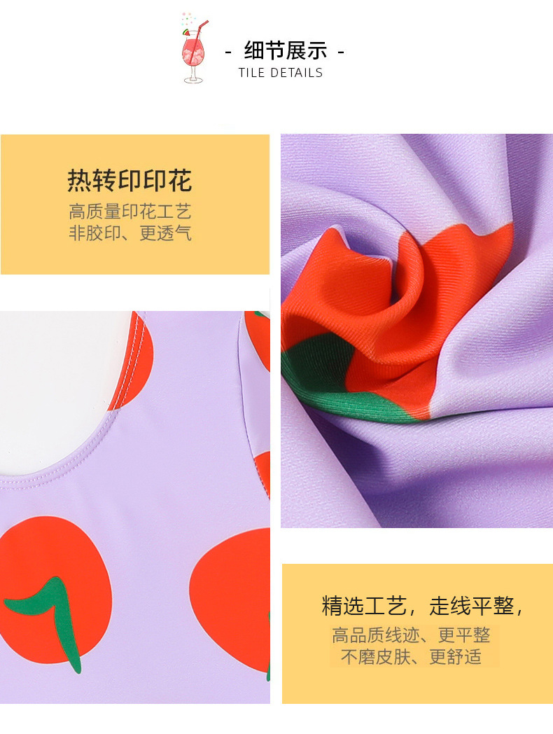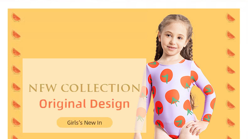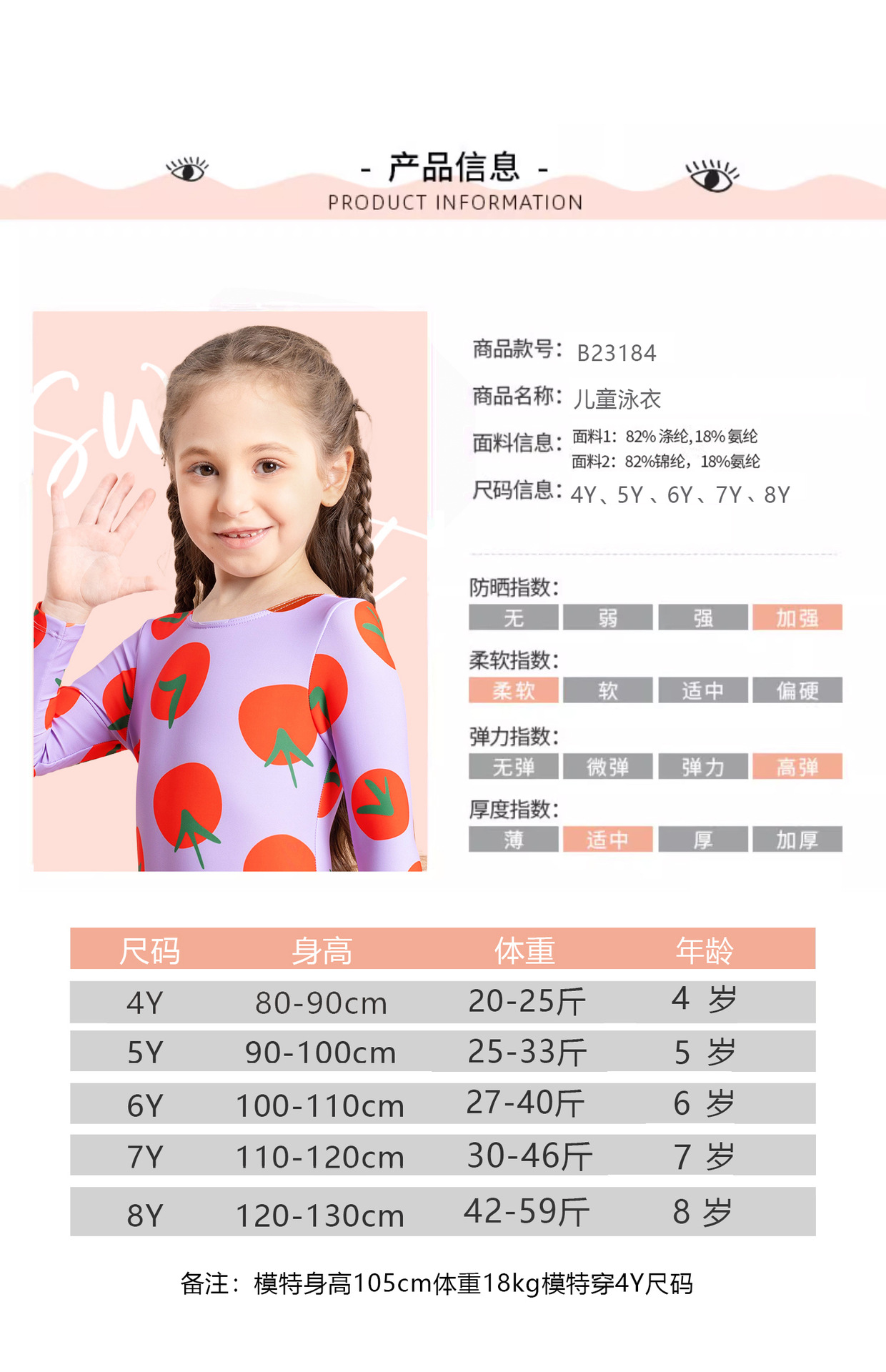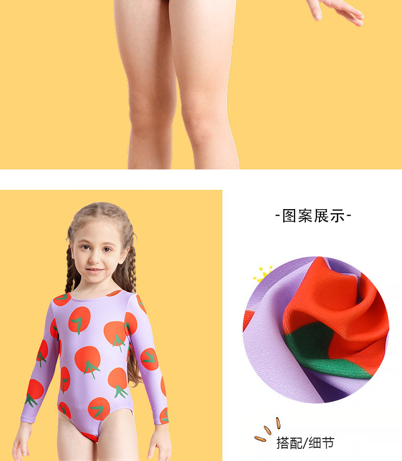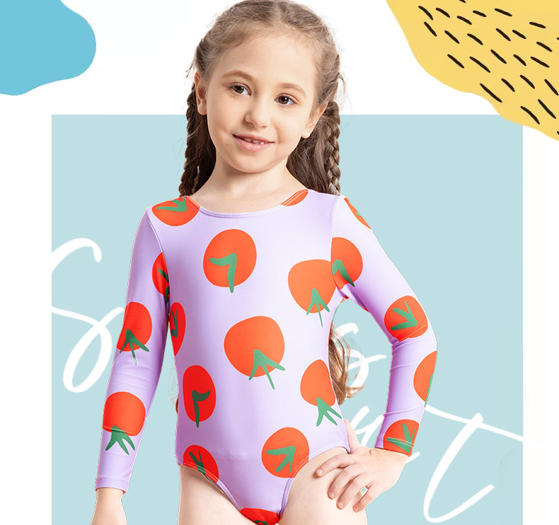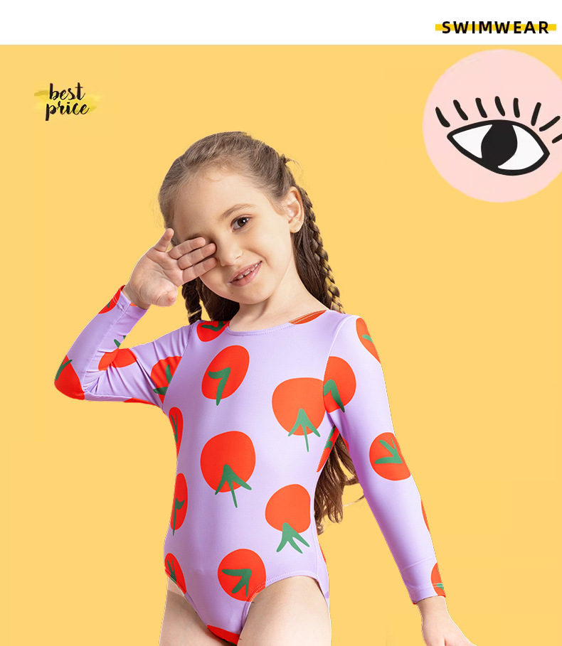 어린이 수영복 여자 긴팔 수영복 2024 새로운 토마토 인쇄 국경 선 스크린 여자 수영복