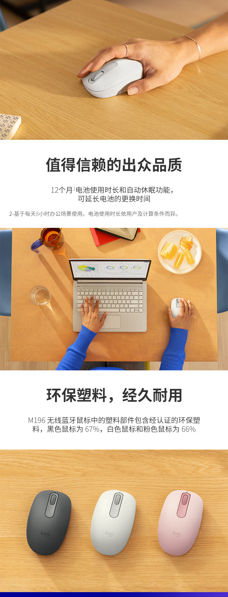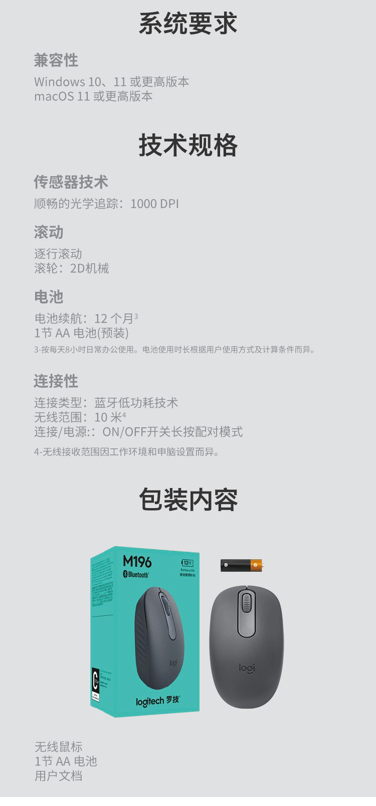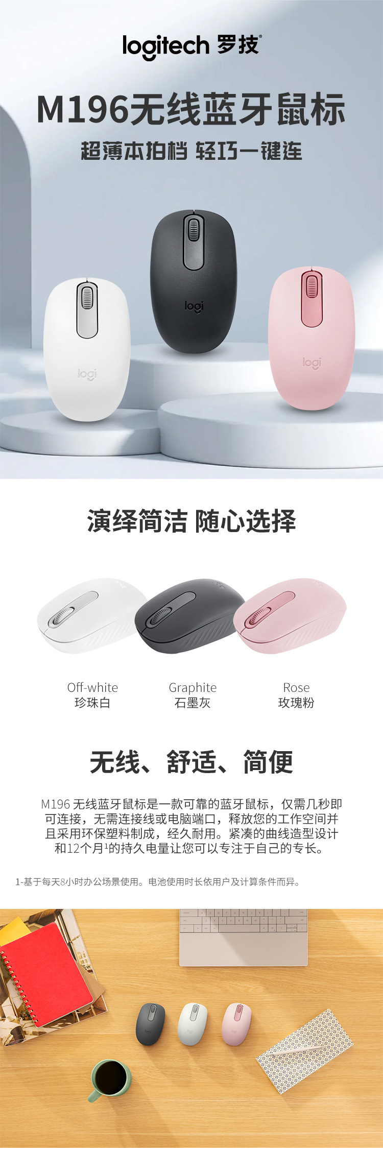 로지텍 M196 무선 블루투스 오피스 마우스 데스크톱 노트북 비즈니스 기업 컴퓨터 액세서리 구매스토어 가기