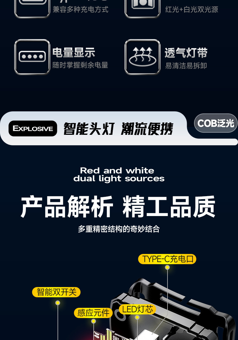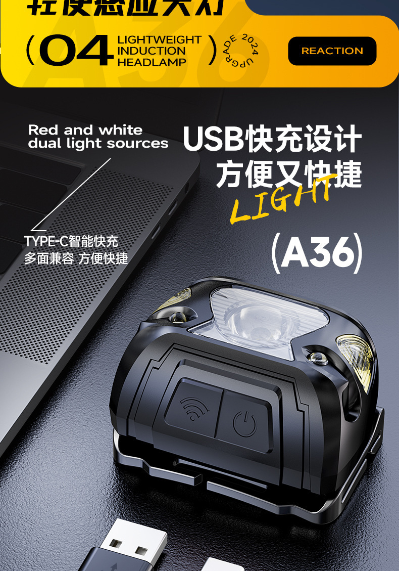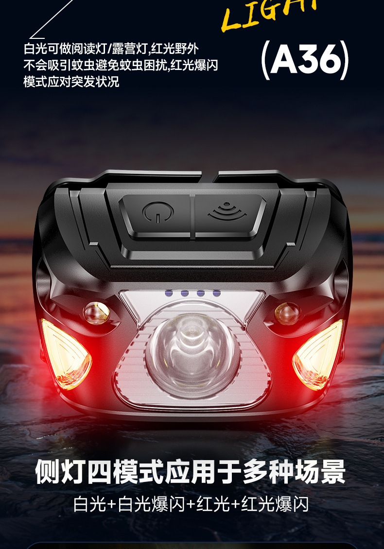 Led 유도 전조등 긴 지구력 강한 빛 usb 충전 낚시 미니 빨간 머리 장착 야외 승마 작업 빛스토어 가기