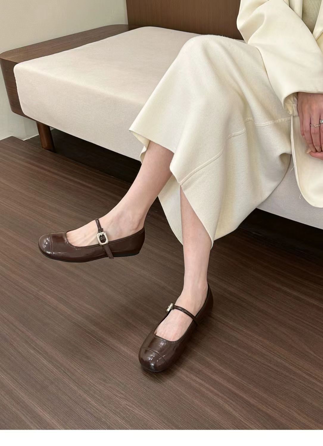 실버 메리 제인 얕은 입 신발 여성 2024 새로운 한국 스타일 프랑스 스타일 샤넬 스타일 플랫 하단 소프트 슬립 온 완두콩스토어 가기