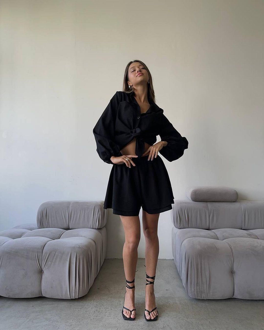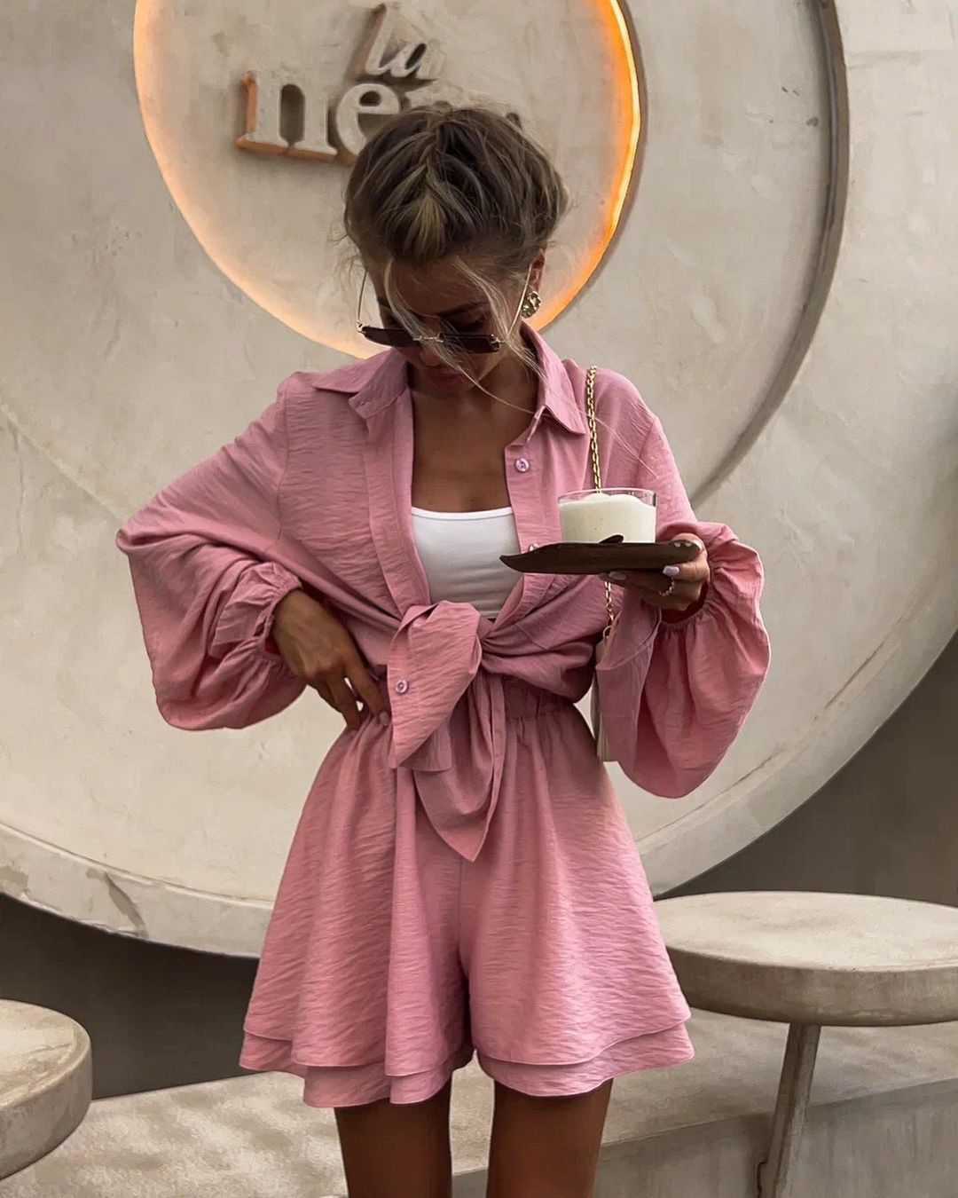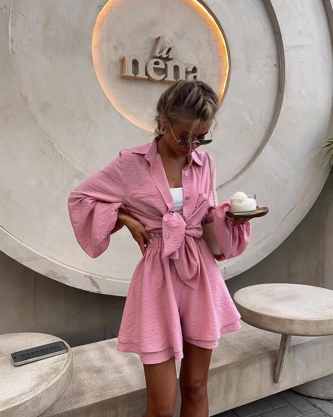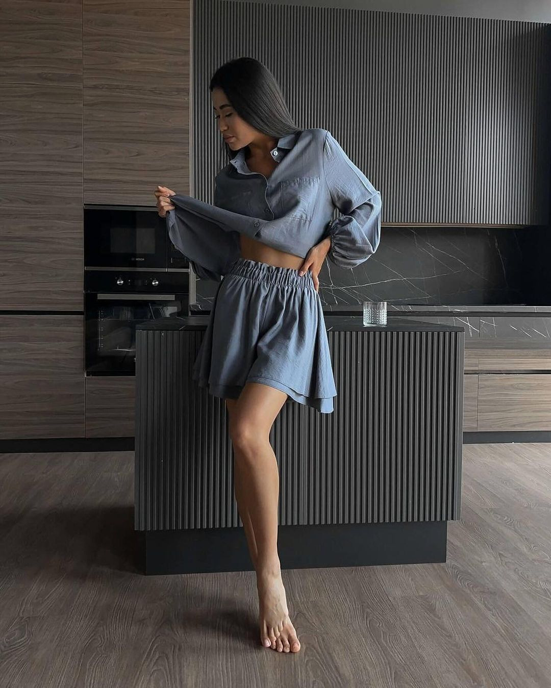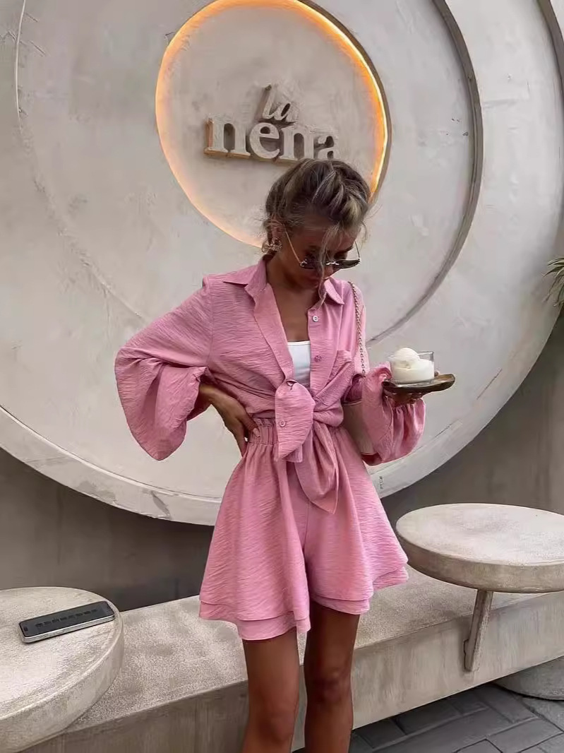 2024 여름 유럽과 미국의 여성 의류 아마존 국경 긴팔 탑 러플 반바지 캐주얼 패션 세트 여성스토어 가기
