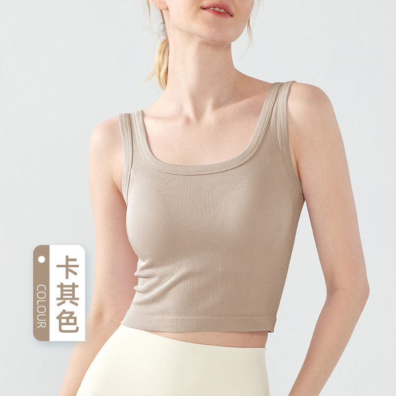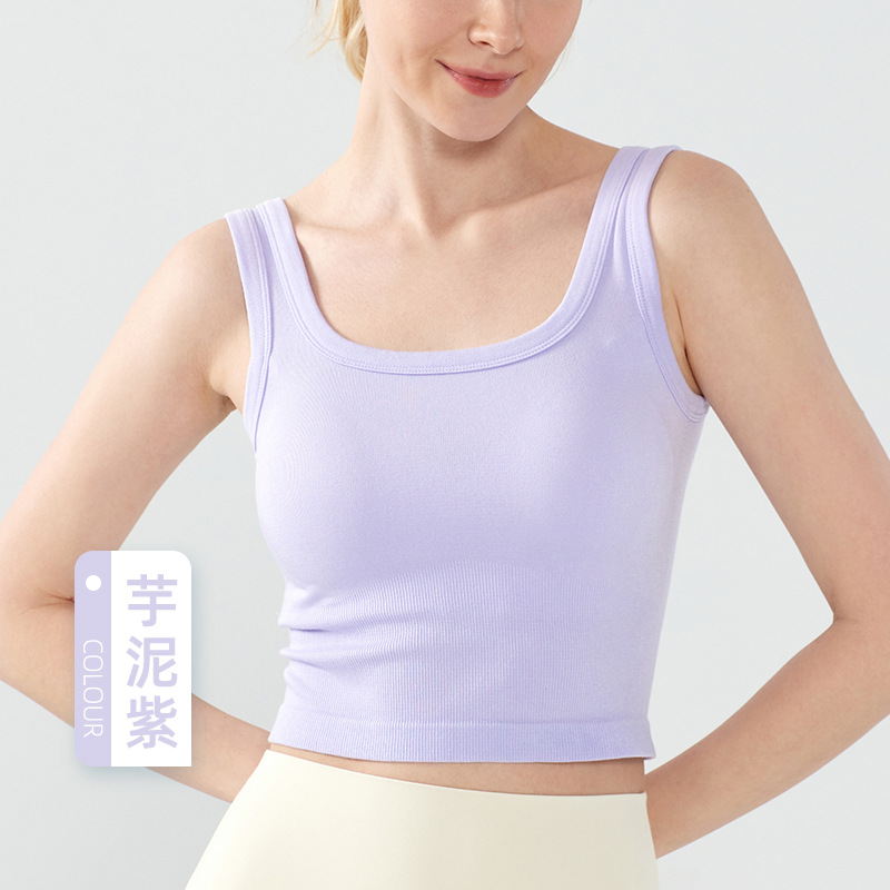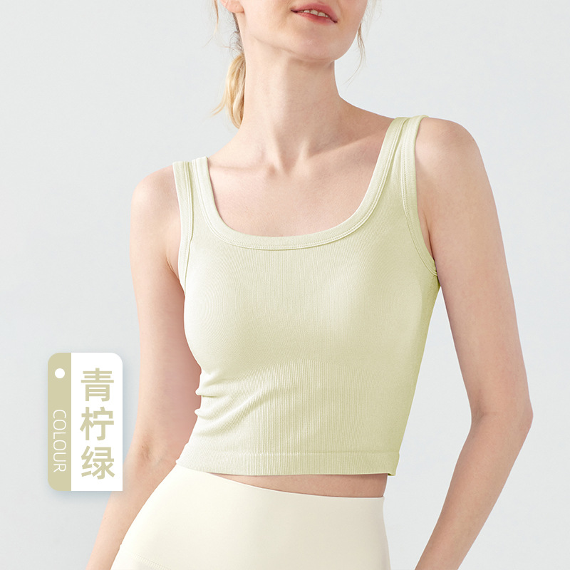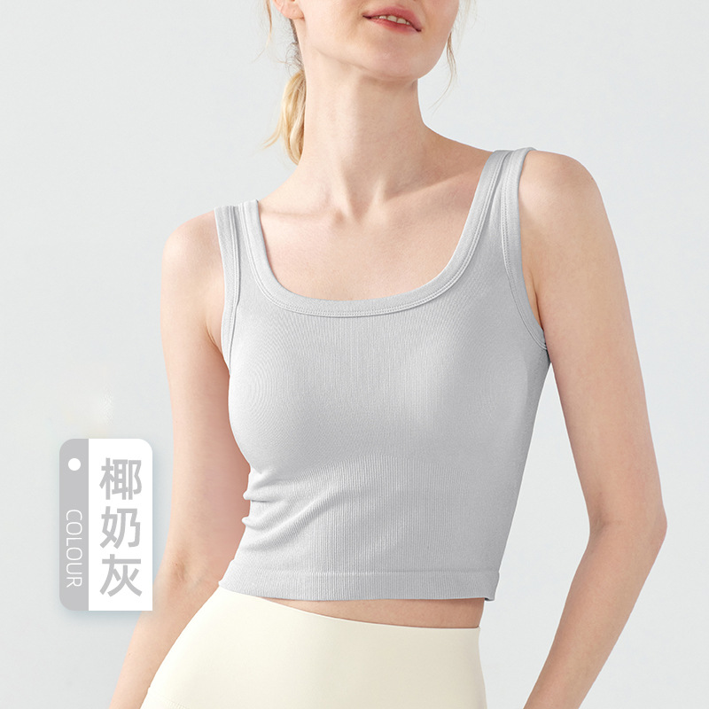 새로운 원활한 아이스 원사 스포츠 속옷 여성 고정 컵 외부 착용 통기성 피트니스 브래지어 캐주얼 통근 요가 조끼