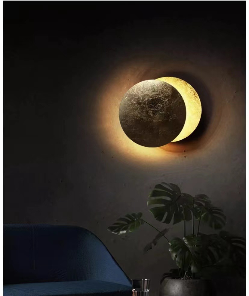 북유럽 침실 LED 창조적 인 달 이클립스 벽 램프 북유럽 통로 복도 계단 전시 홀 침대 옆 달 램프