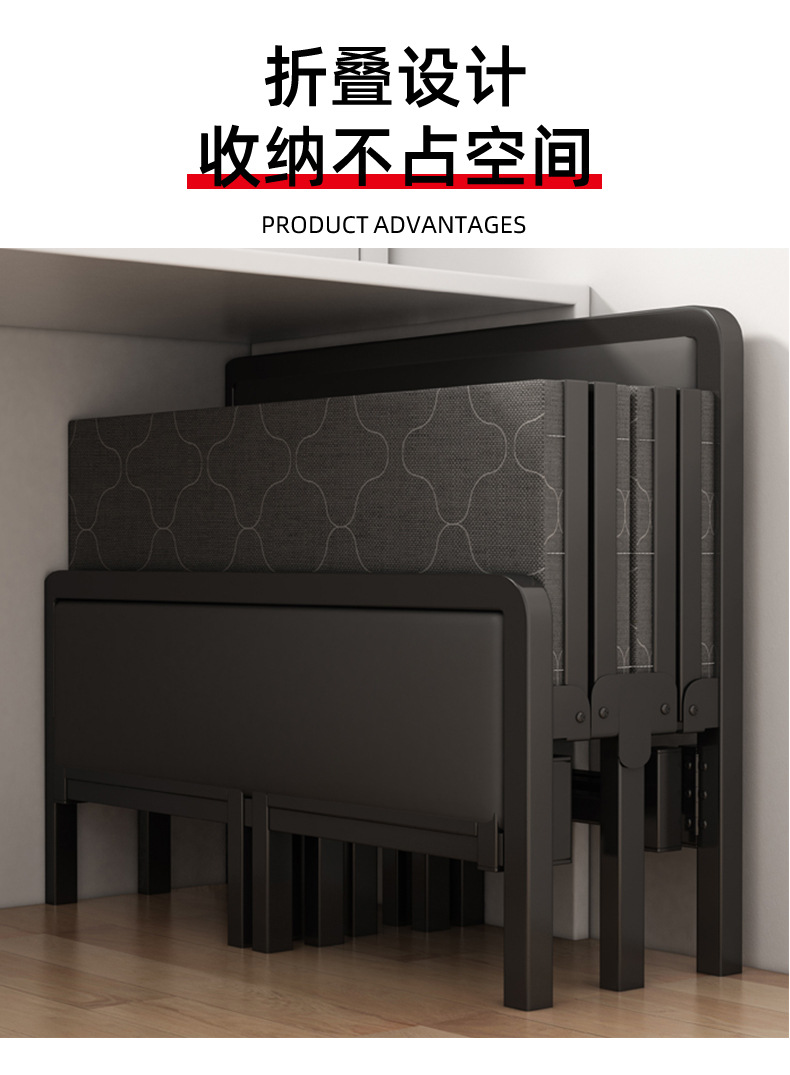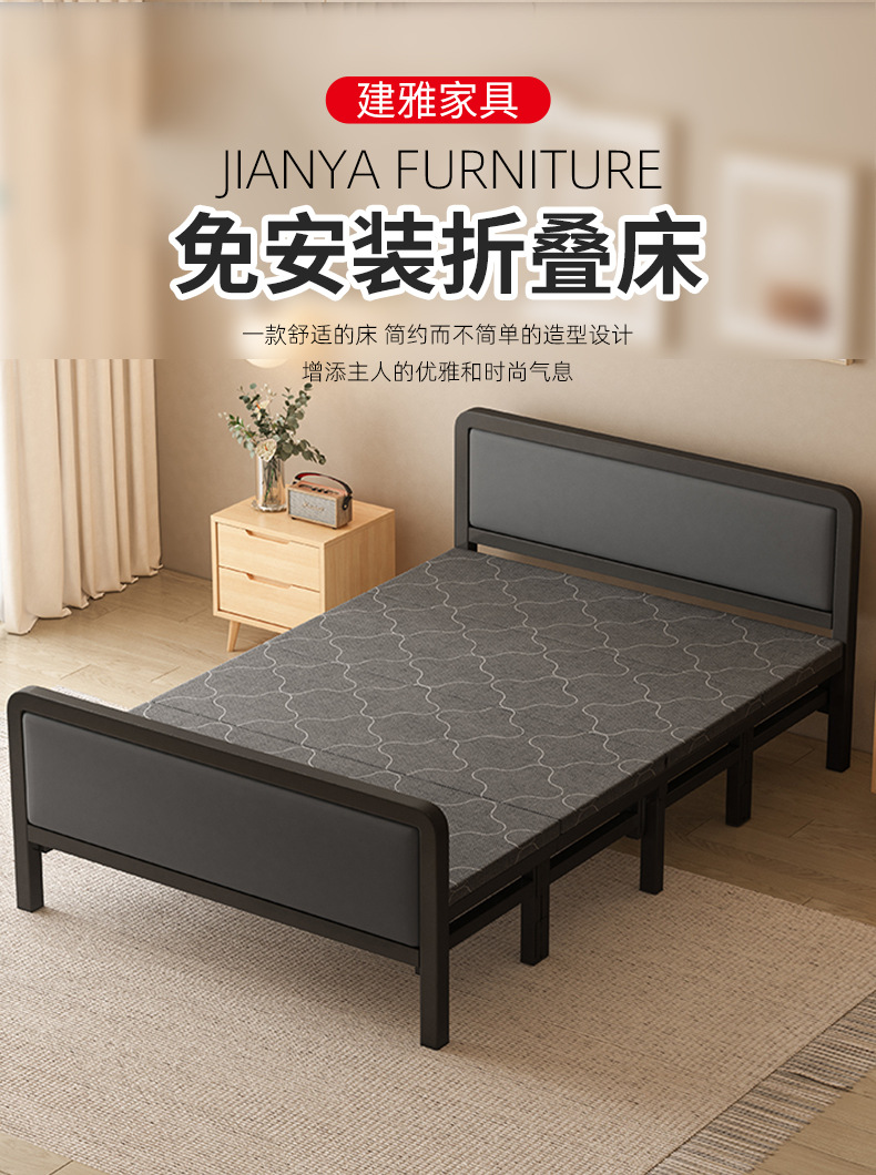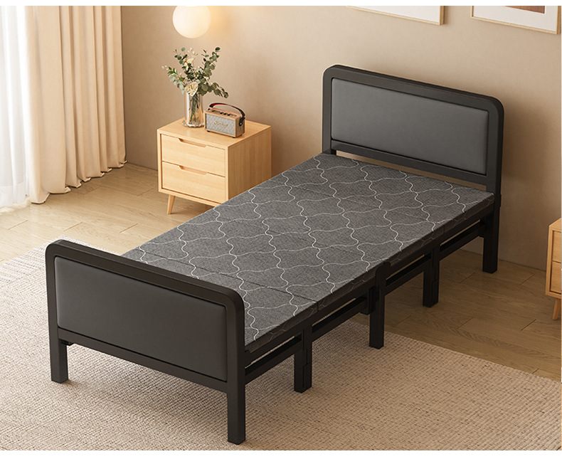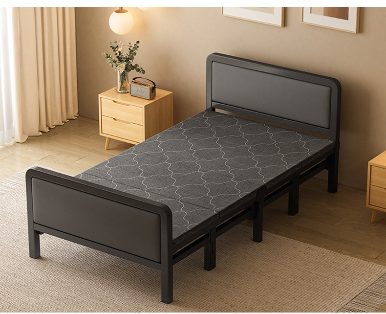 싱글 침대 가정용 성인 휴대용 더블 침대 심플 모던 심플 점심 시간 철제 프레임 하드 침대 강화 접이식 침대