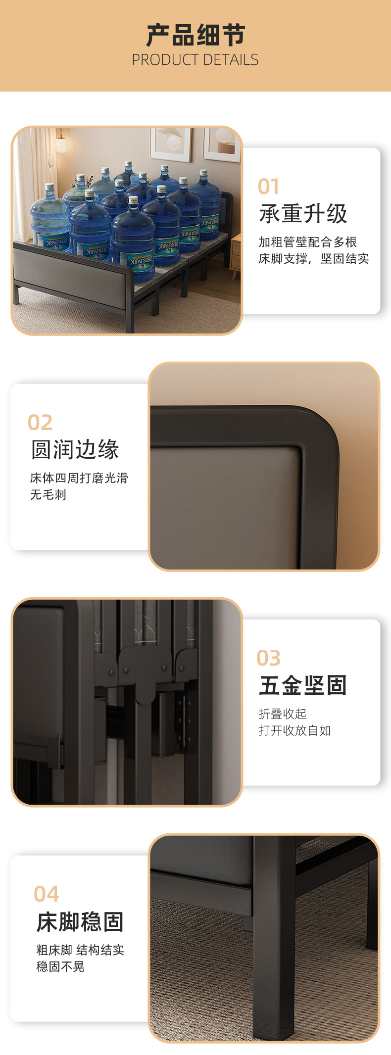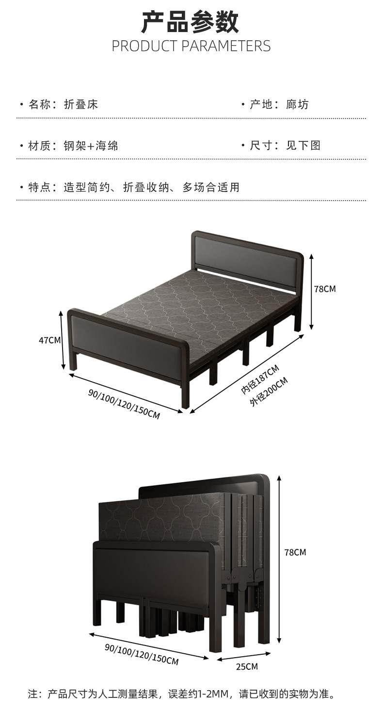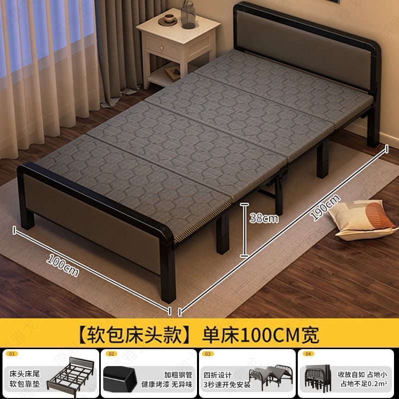 싱글 침대 가정용 성인 휴대용 더블 침대 심플 모던 심플 점심 시간 철제 프레임 하드 침대 강화 접이식 침대스토어 가기