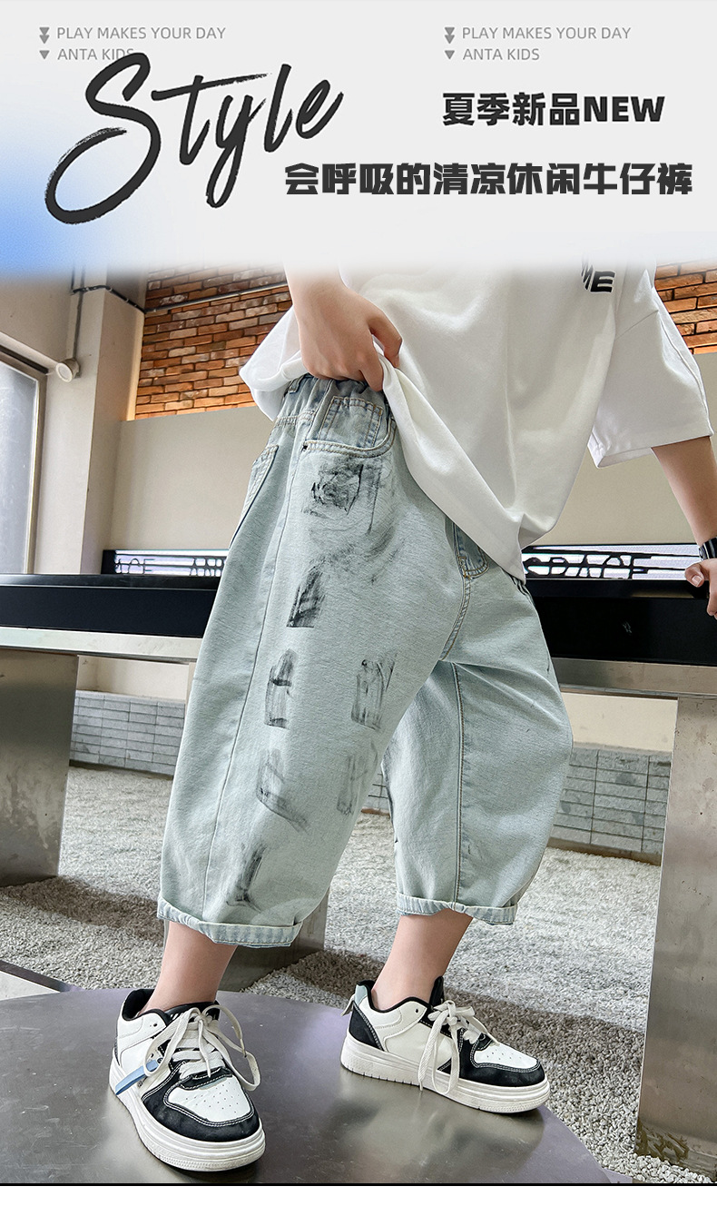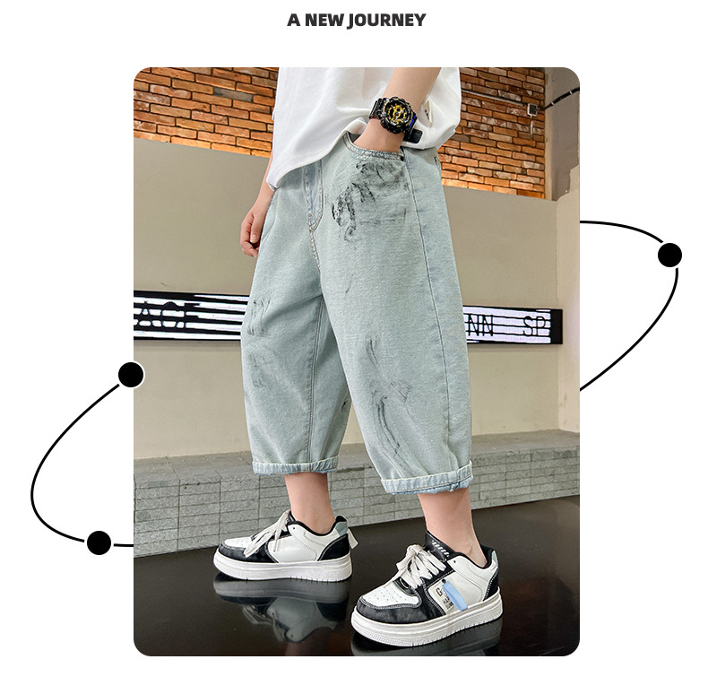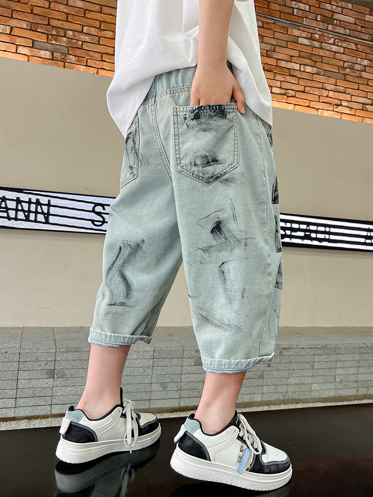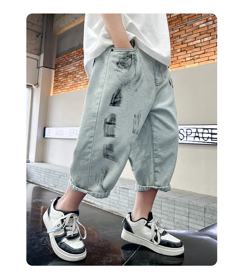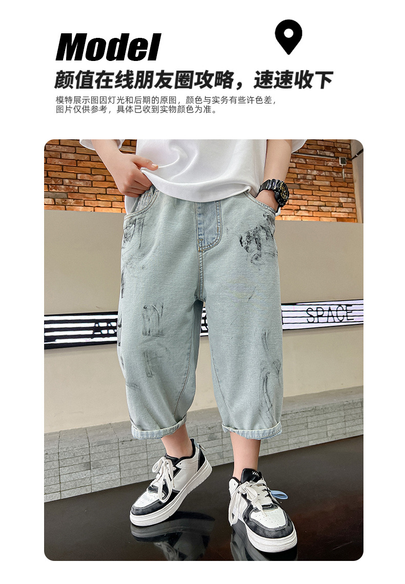 남학생 여름 바지 빈티지 데님 반바지 여름 얇은 2024 새로운 도착 미드 빅 소년 여름 카프리 바지