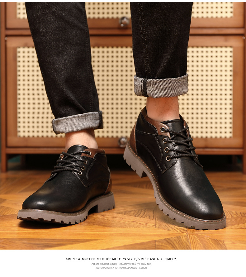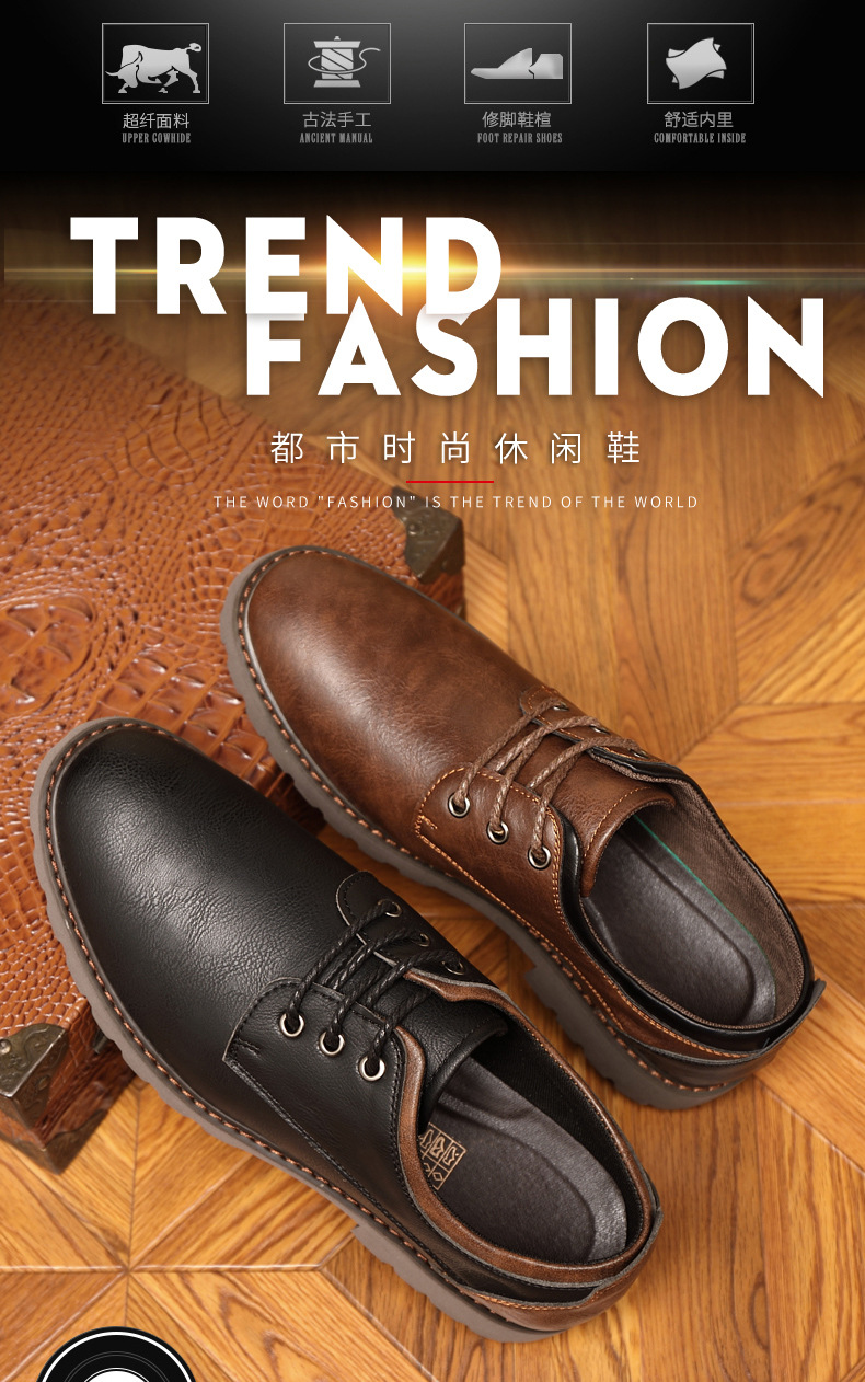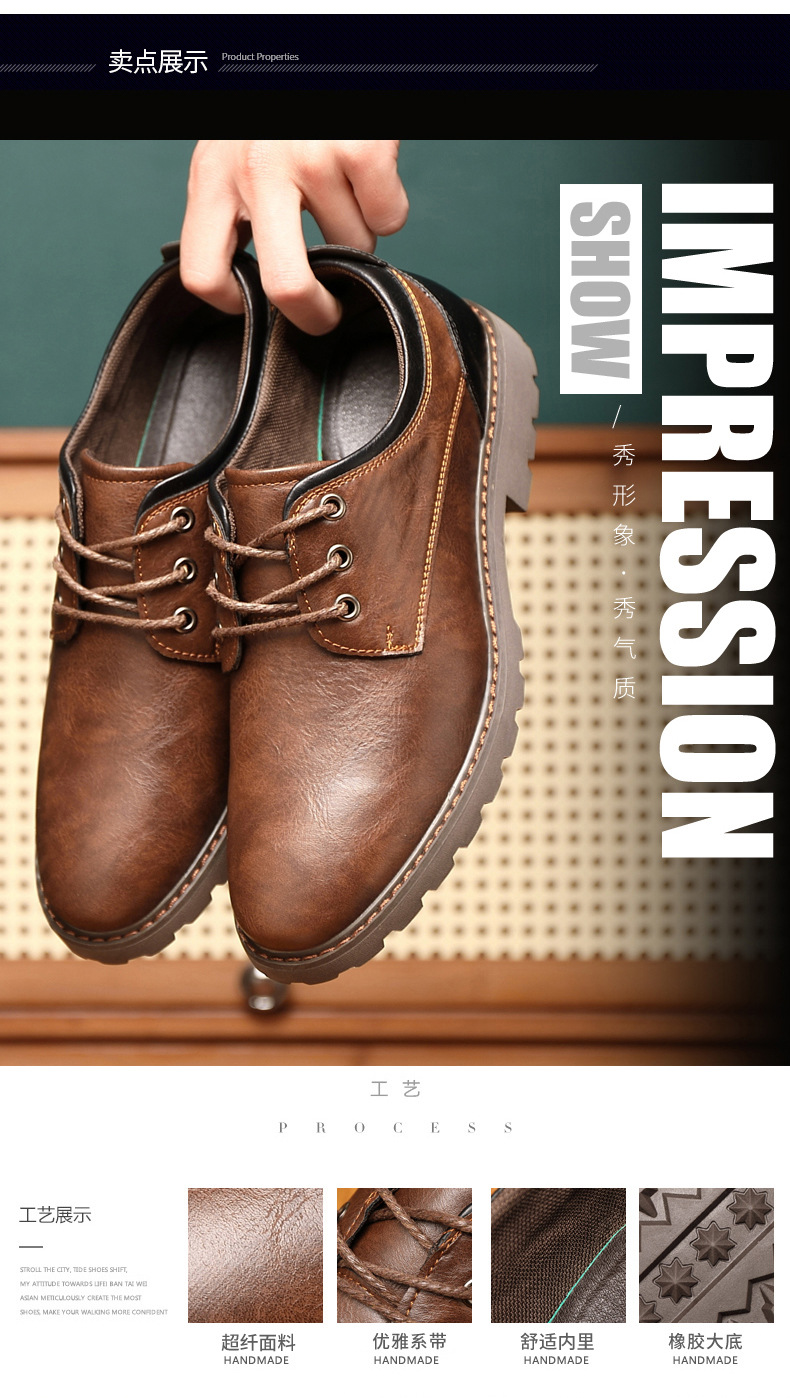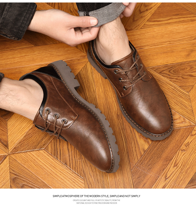 국경 간 가죽 신발 남성 통기성 영국 스타일 비즈니스 원피스 빅 헤드 패셔너블 로우 탑 마틴 부츠 두꺼운 밑창 캐주얼 가죽 남성 신발스토어 가기