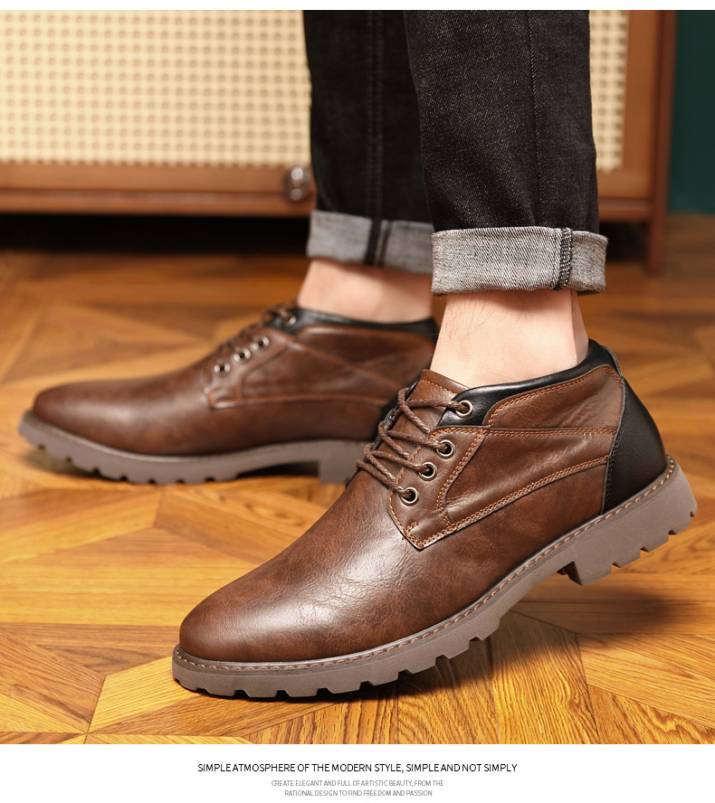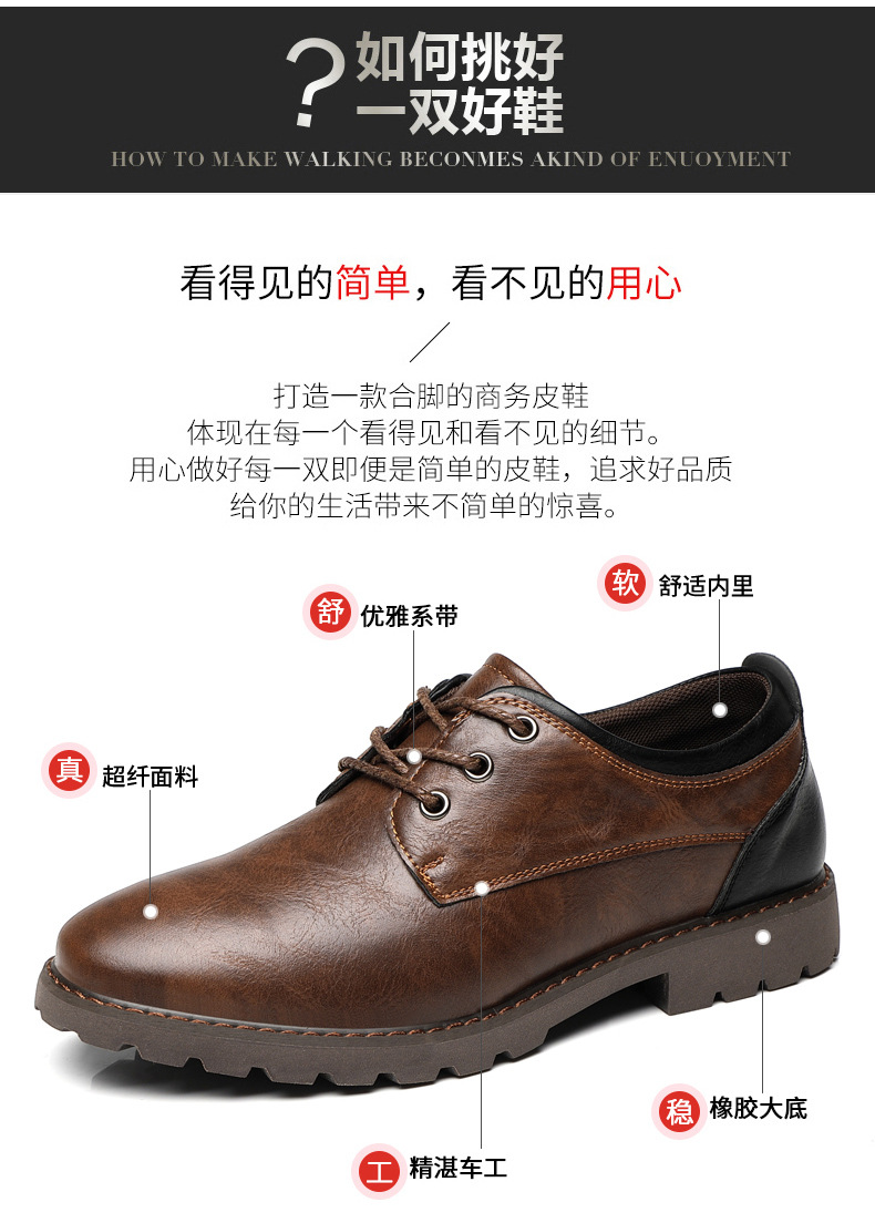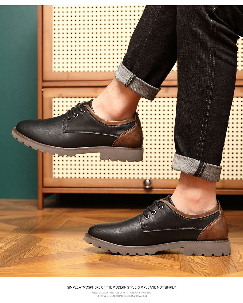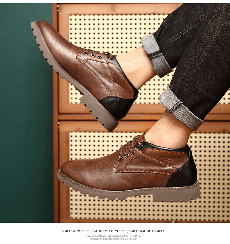 국경 간 가죽 신발 남성 통기성 영국 스타일 비즈니스 원피스 빅 헤드 패셔너블 로우 탑 마틴 부츠 두꺼운 밑창 캐주얼 가죽 남성 신발스토어 가기