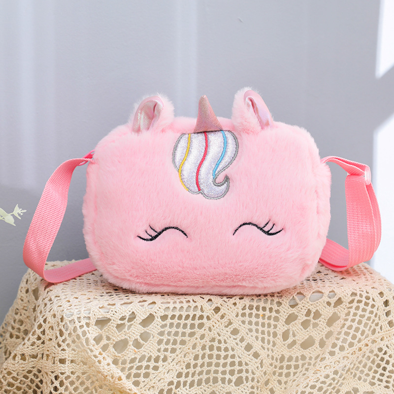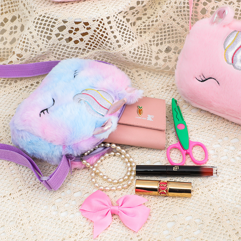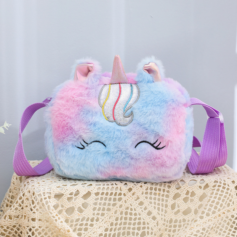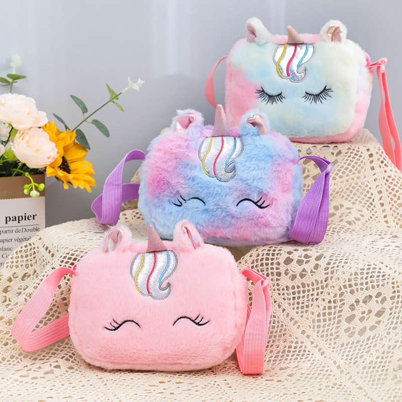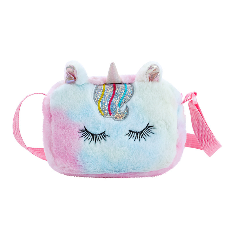 유니콘 타이다이 플러시 숄더백 어린이용 귀여운 숄더 수납 가방 컬러풀 소녀 크로스백 봄 축제 기간에 재고 있음