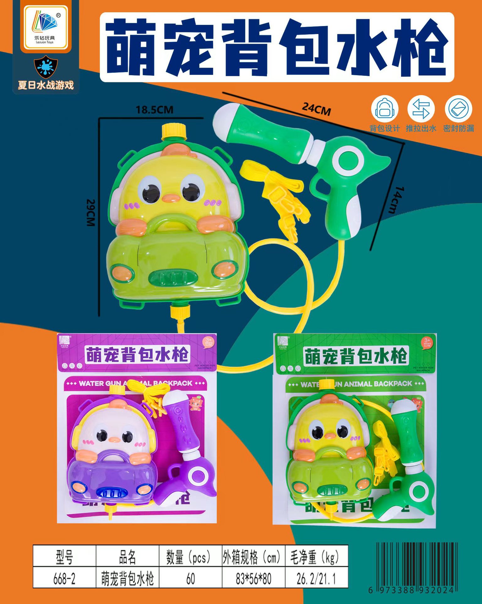• 668-2 귀여운 애완동물 백팩 물총 (혼합색상)
