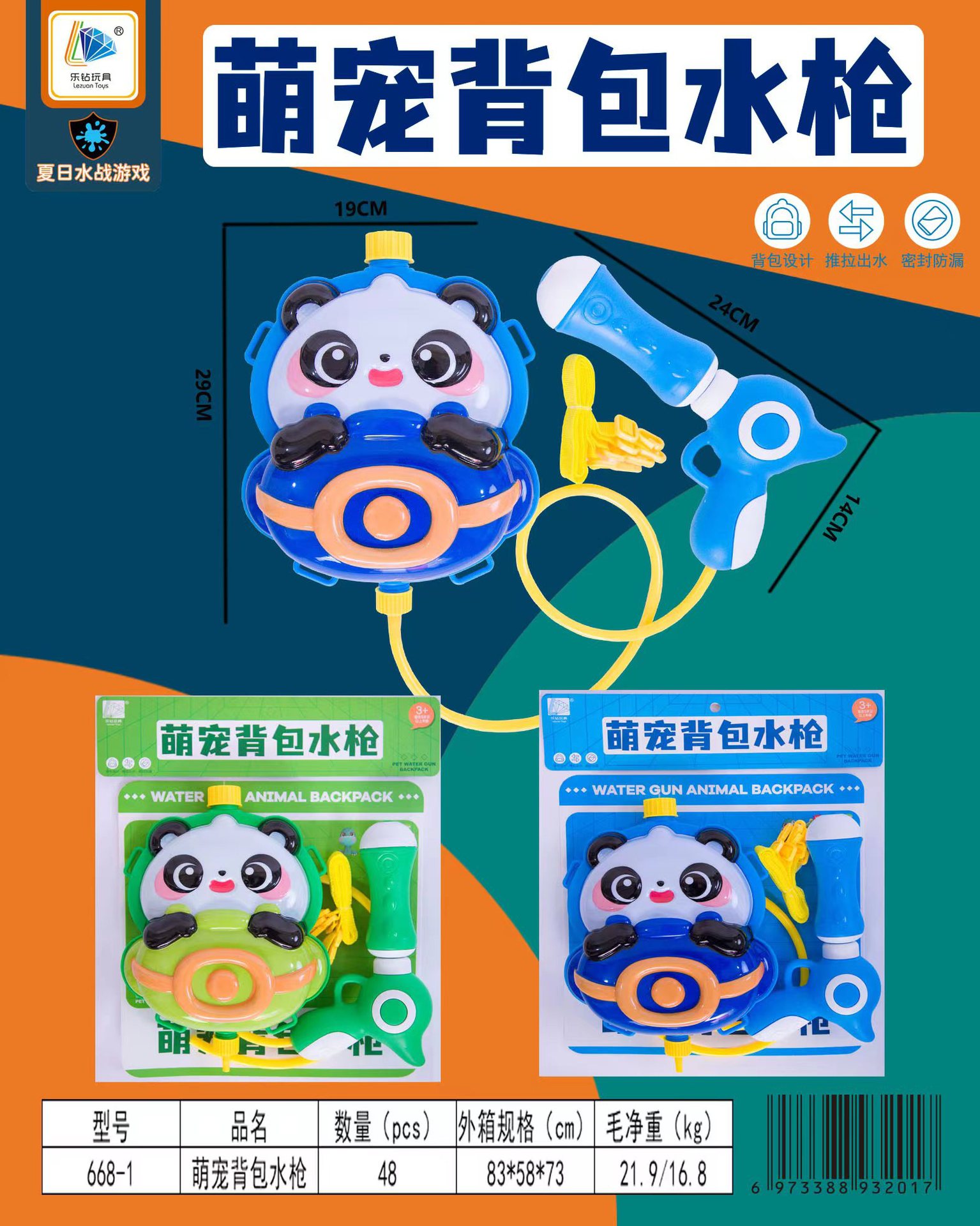 • 668-1 귀여운 애완동물 백팩 물총 (혼합색상)