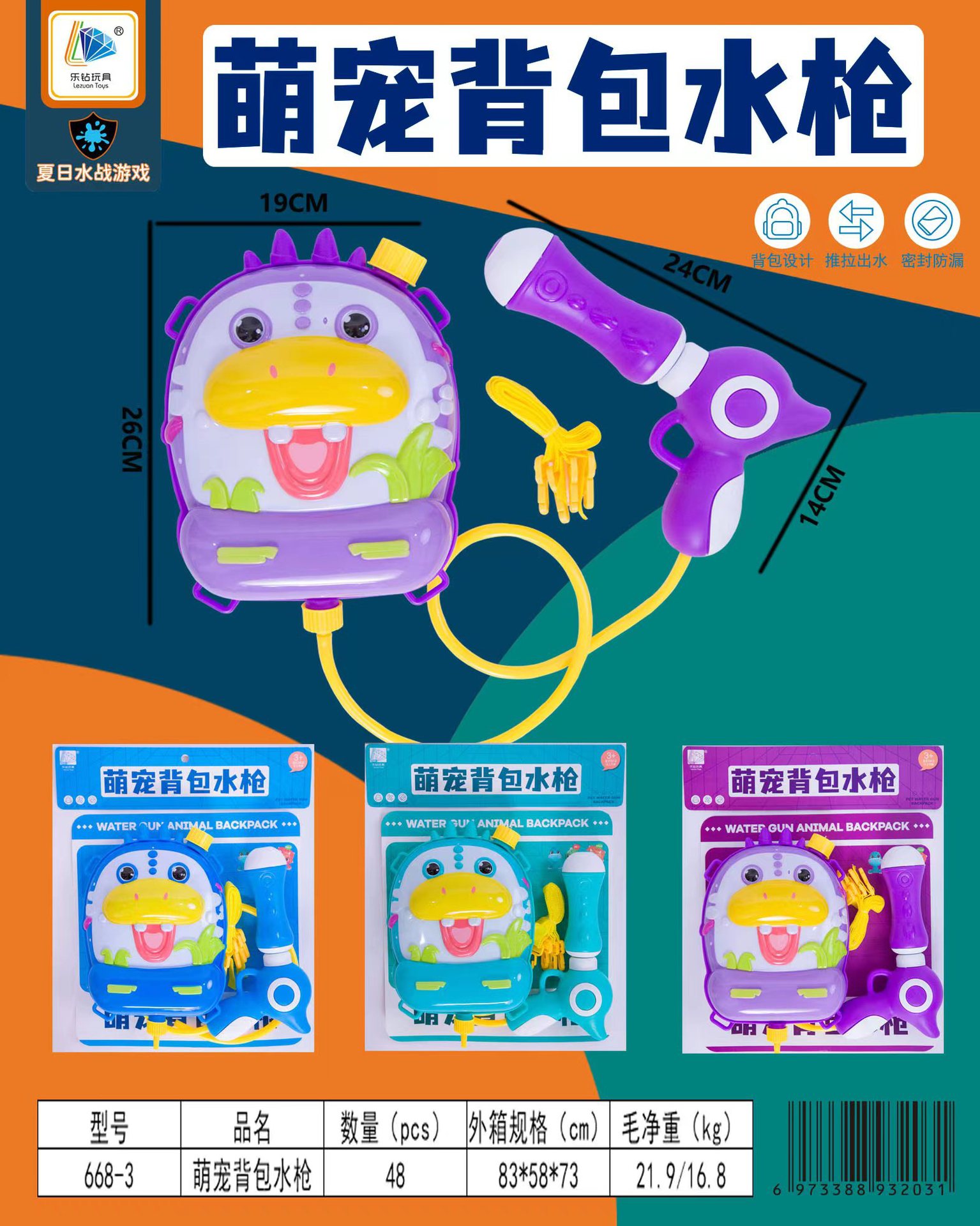• 668-3 귀여운 애완동물 백팩 물총 (혼합색상)