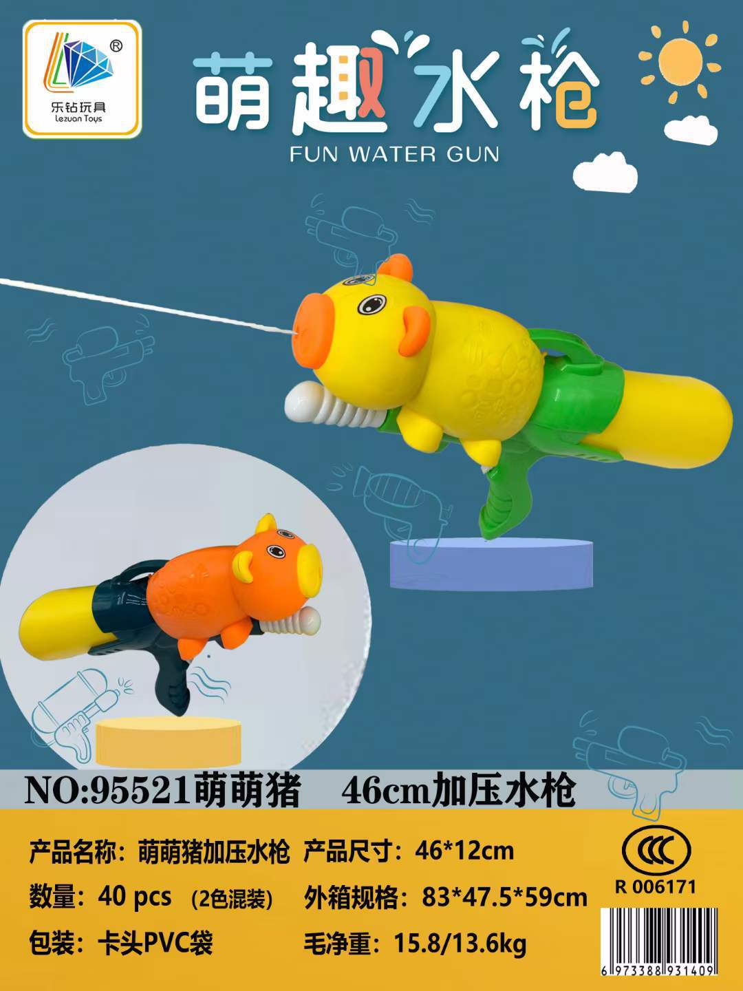 • 95521 귀여운 돼지 가압 물총 (46CM) (혼합 색상)