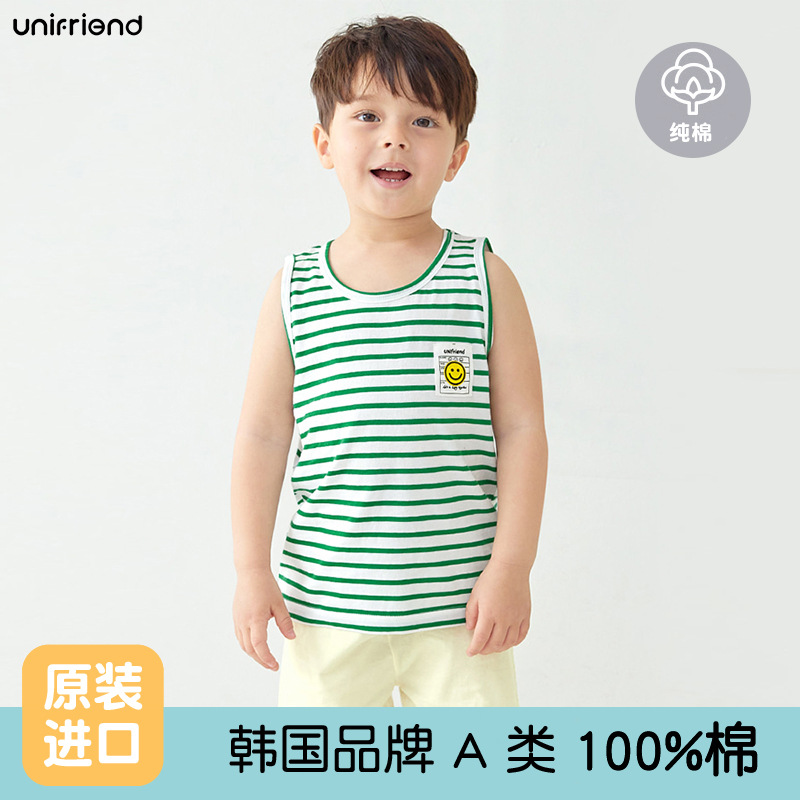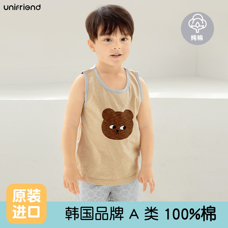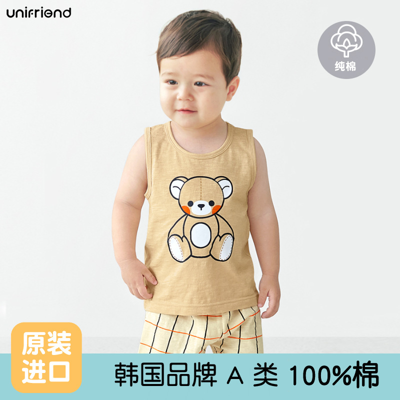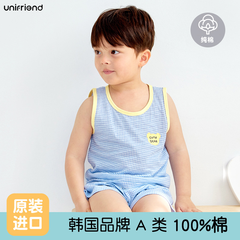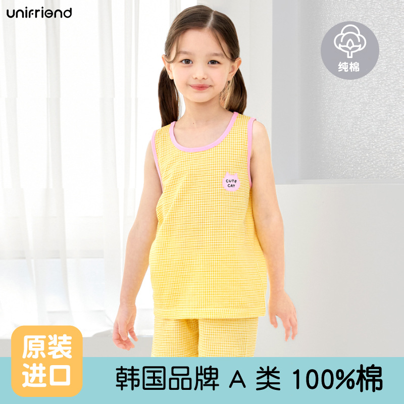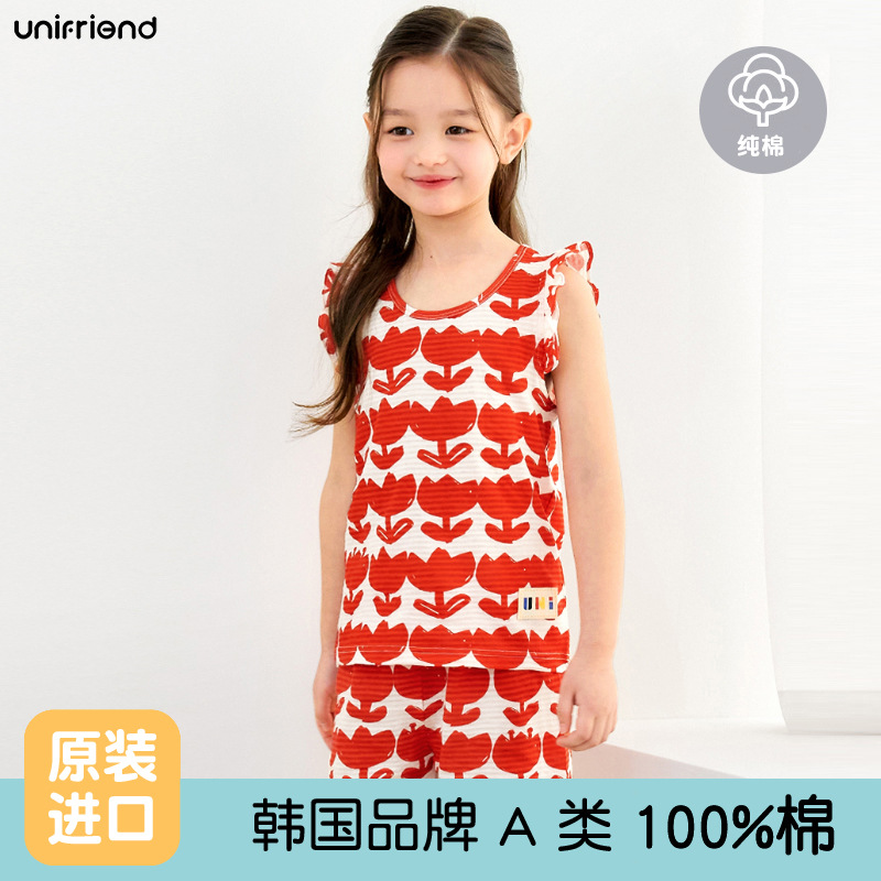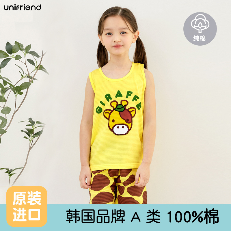 Unifrien 아동복 어린이 조끼 세트 여름면 소녀 반바지 잠옷 아기의 한국식 민소매 소년스토어 가기
