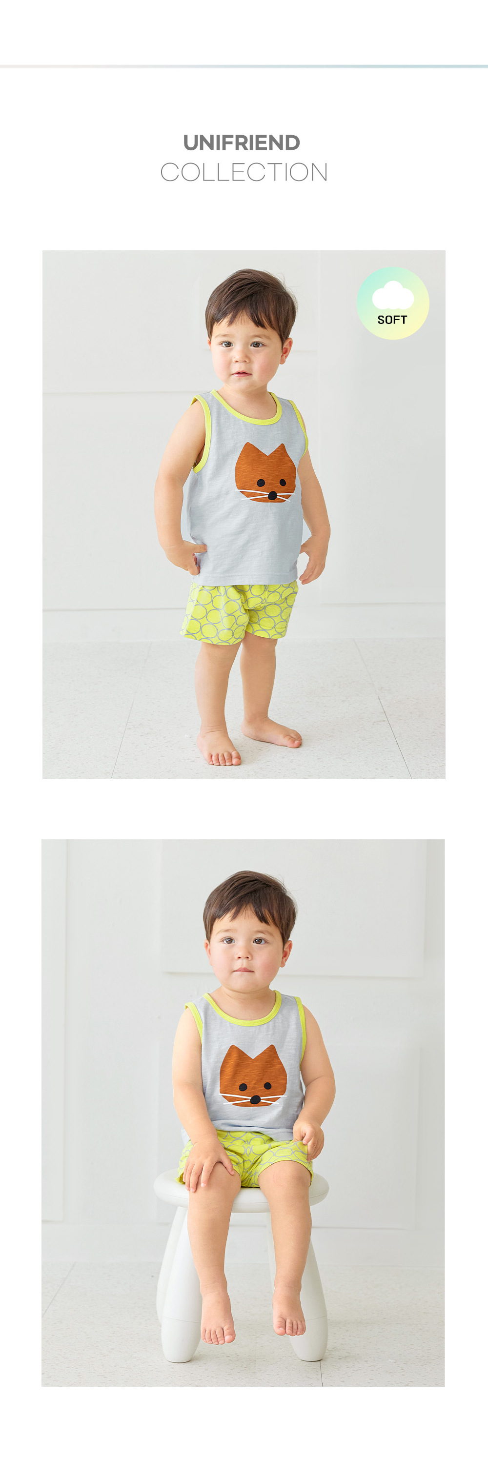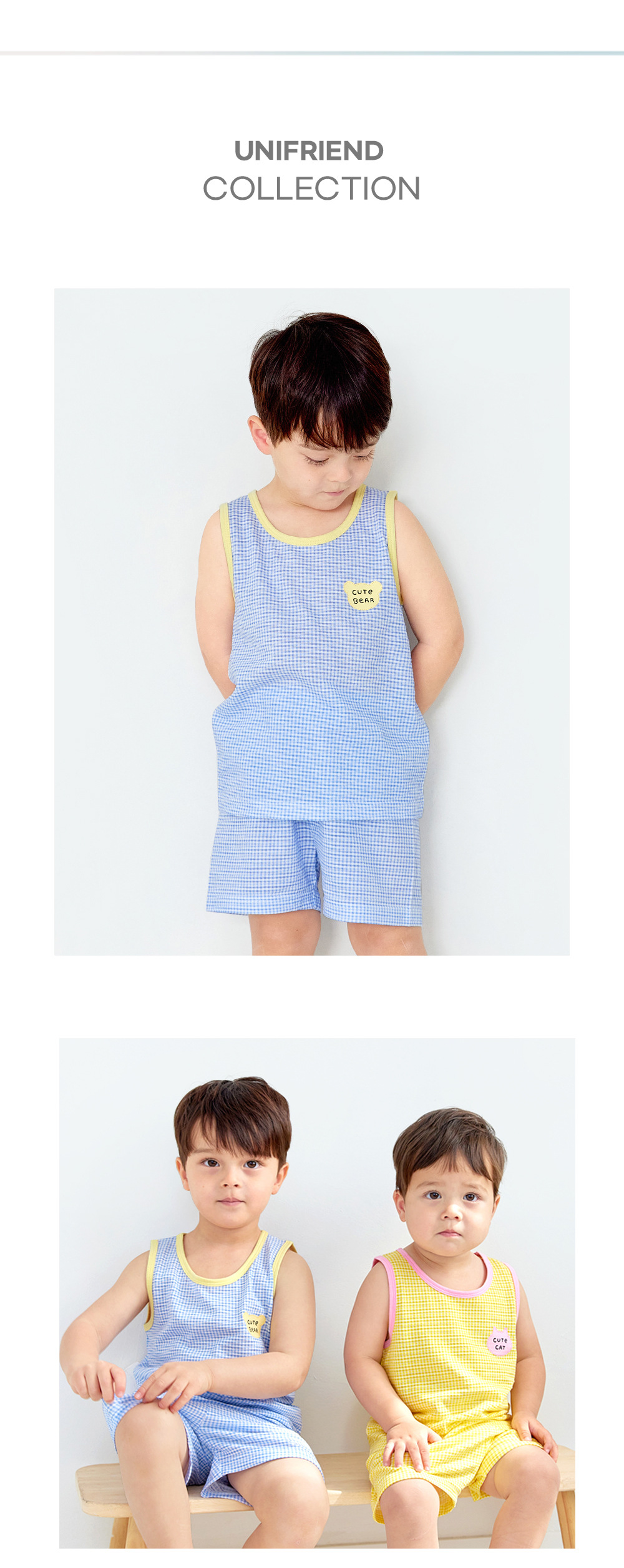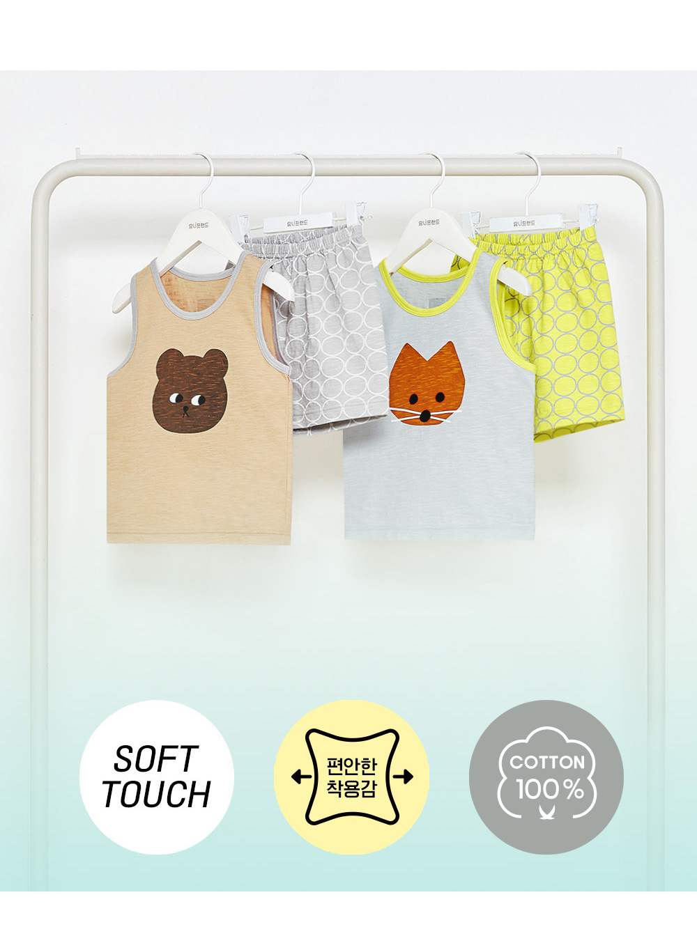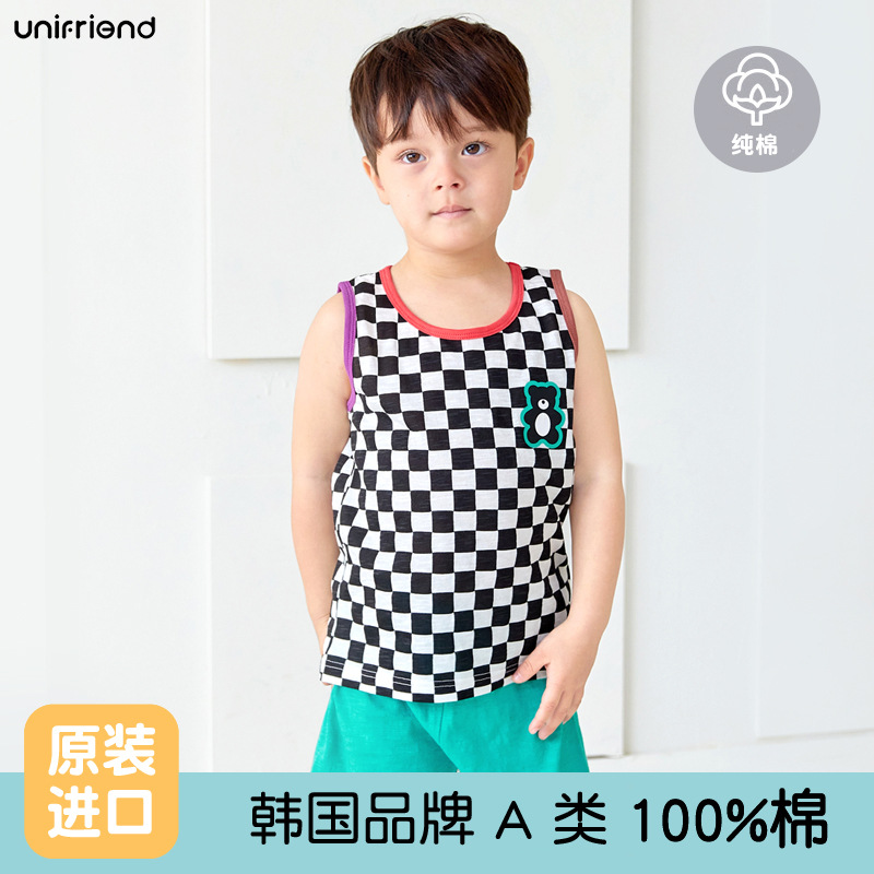 Unifrien 아동복 어린이 조끼 세트 여름면 소녀 반바지 잠옷 아기의 한국식 민소매 소년스토어 가기