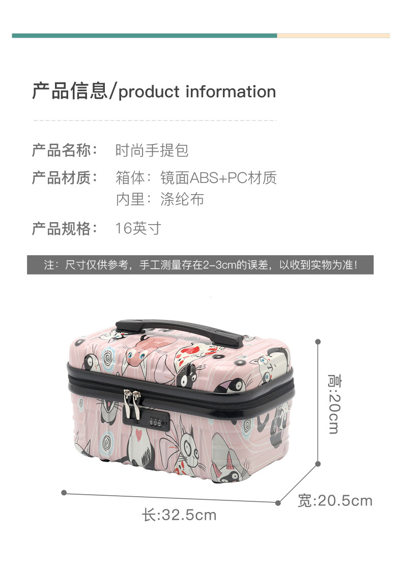 专注箱包11年!我们拥有丰富的箱包制造经验,产品热销国内、香港、东南亚、美国、意大利、荷兰、英国、迪拜、印度、韩国、日本、菲律宾等地,凭借优良的品质与服务,赢得各界朋友的信赖与肯定,享誉海内外。支持大量批发、来样定制、OEM贴牌定制,一件代发, 如需定制各种图案、logo、尺寸、颜色、配件、里布的拉杆箱,欢迎与我们联系洽谈,期待您的到来。