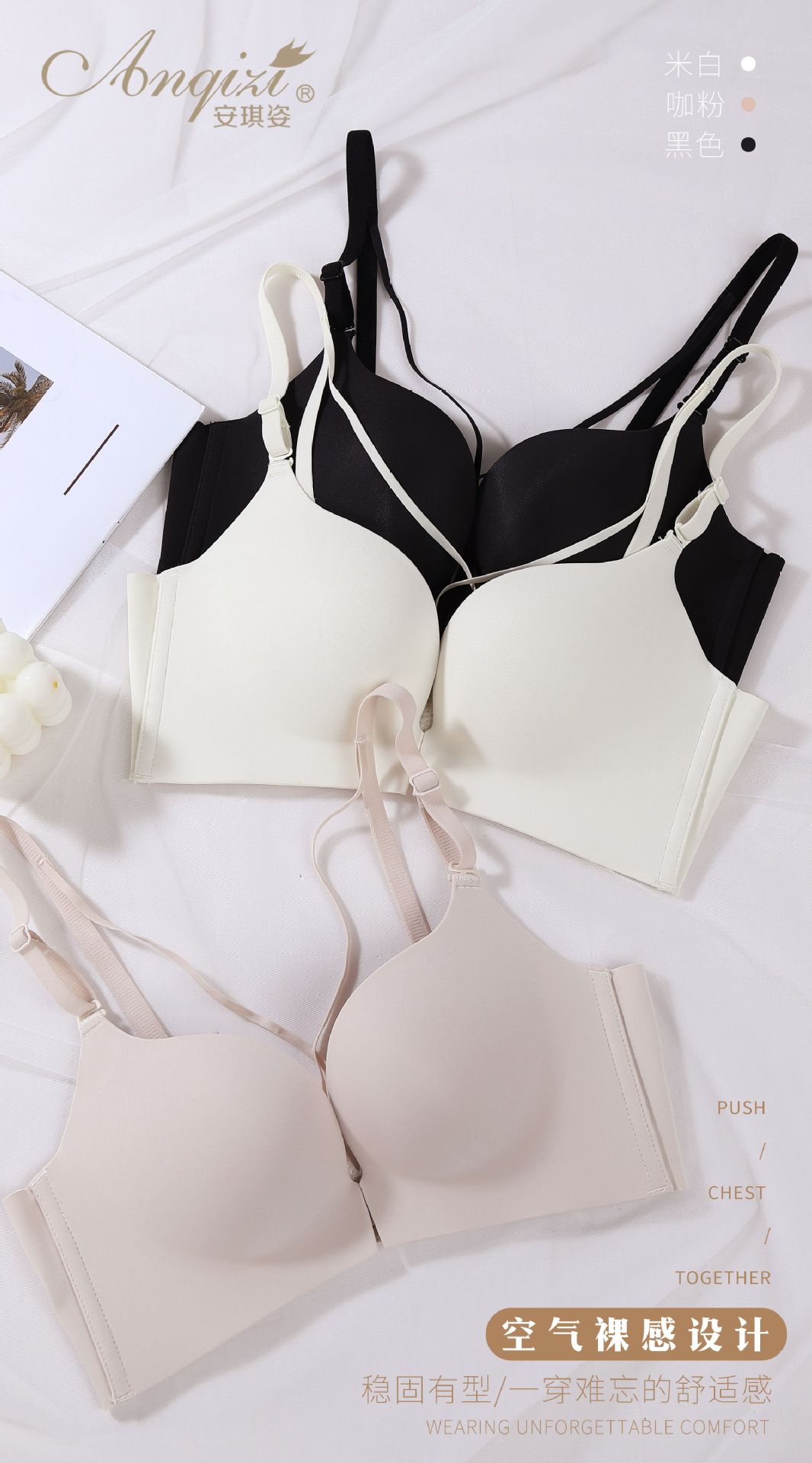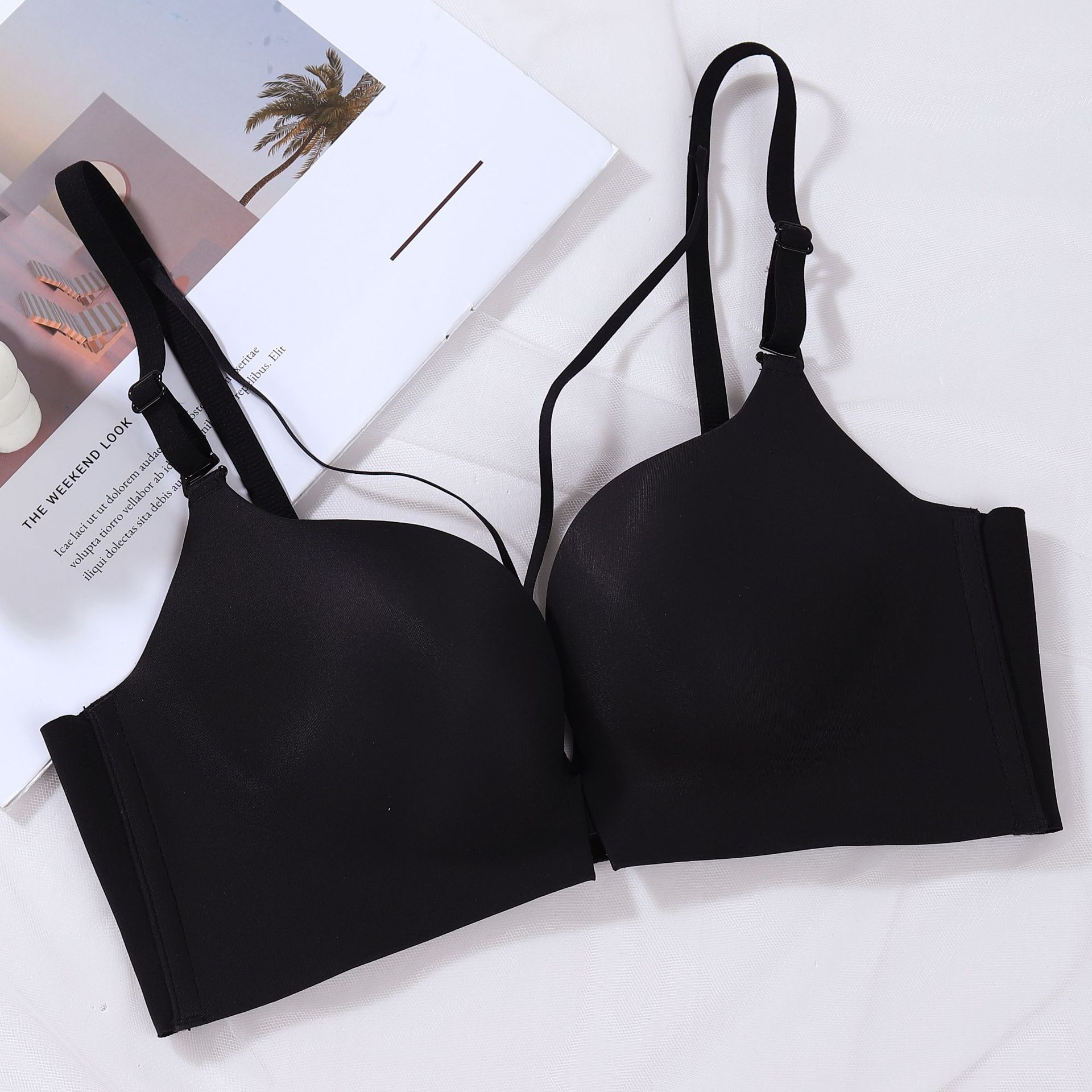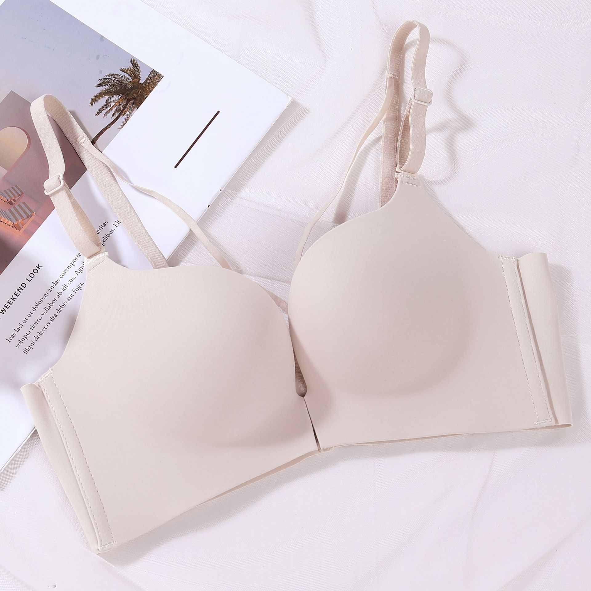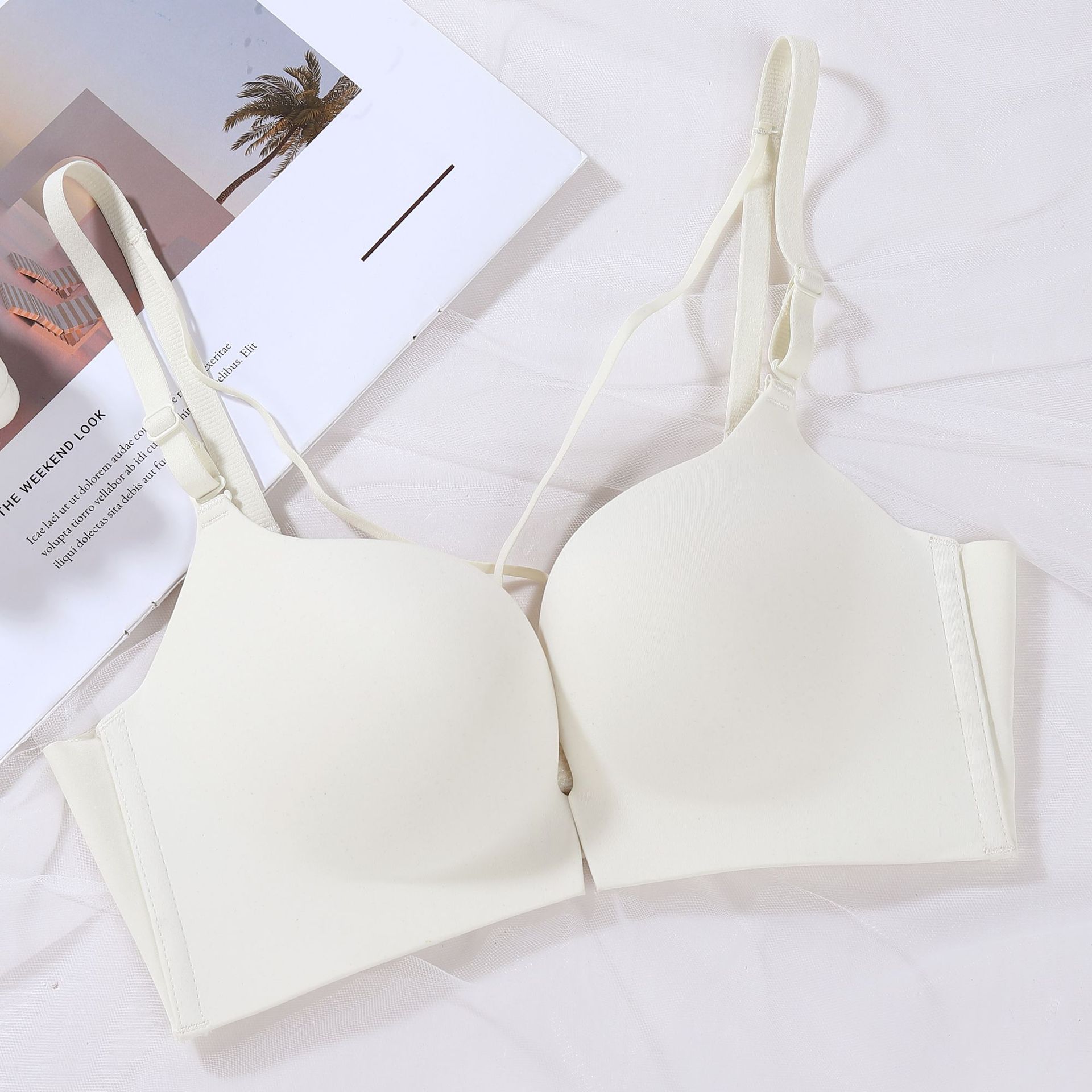 여름 아름다운 뒤 버클 부드러운 간단한 작은 가슴 스틸 링 브래지어 여성용 속옷 통기성 두꺼운 컵 브래지없이 모여스토어 가기