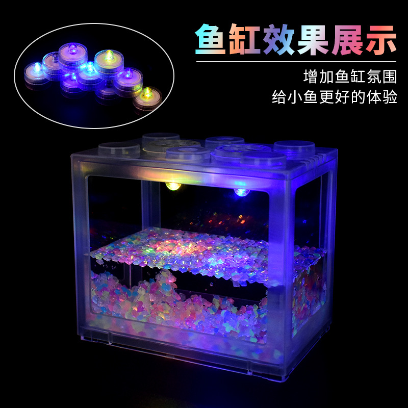 수족관 물고기 탱크 조명 램프 촛불 램프 빌딩 블록 물고기 탱크 램프 방수 LED 컬러 미니 램프 버튼 배터리 램프