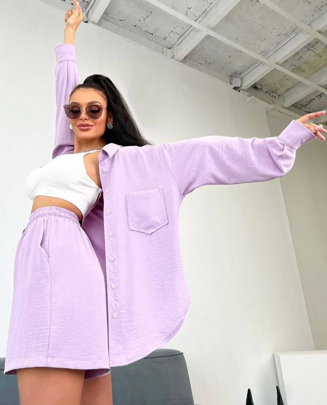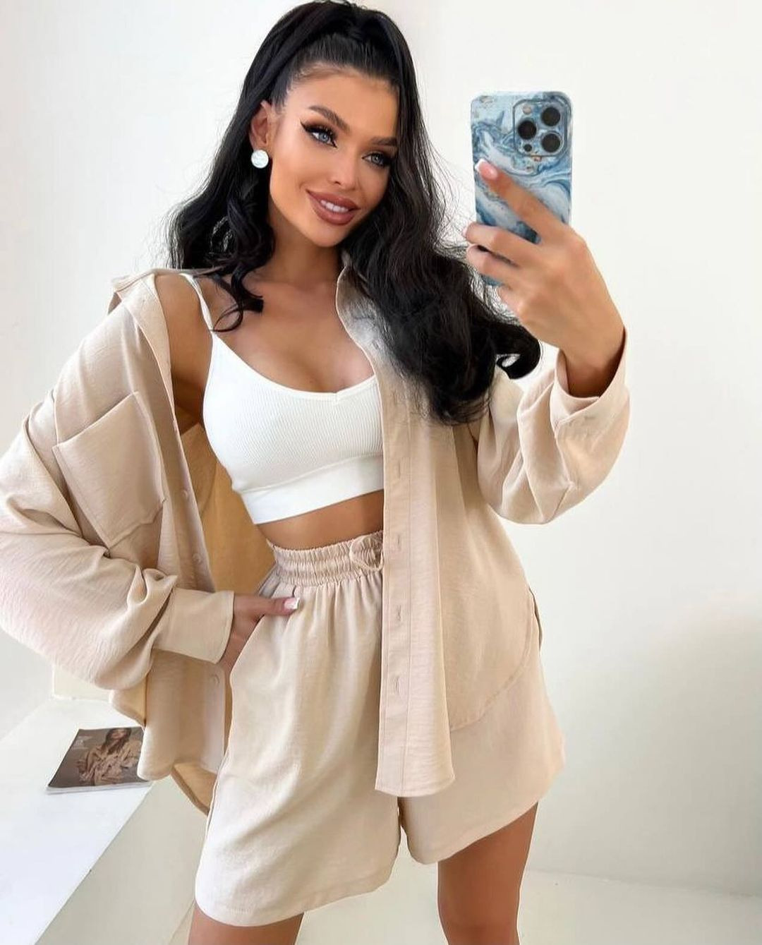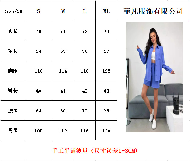 2024 아마존 국경 유럽 및 미국 여성의 단색 단일 가슴 긴 소매 셔츠 느슨한 패션 캐주얼 반바지 세트스토어 가기
