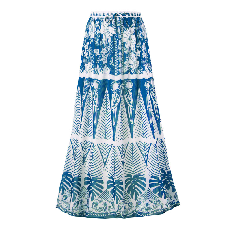 2024 새로운 빈티지 스플릿 수영복 유럽과 미국의 섹시한 원 숄더 수영복 쉬폰 비치 스커트 세트 도매 아마존