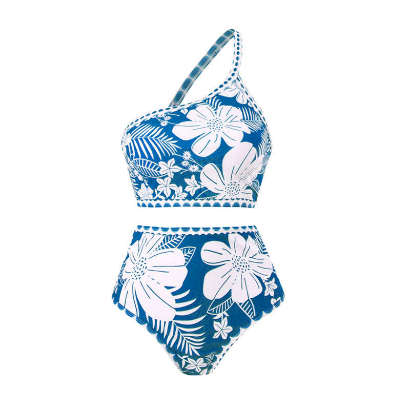 2024 새로운 빈티지 스플릿 수영복 유럽과 미국의 섹시한 원 숄더 수영복 쉬폰 비치 스커트 세트 도매 아마존스토어 가기