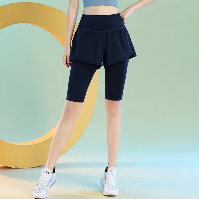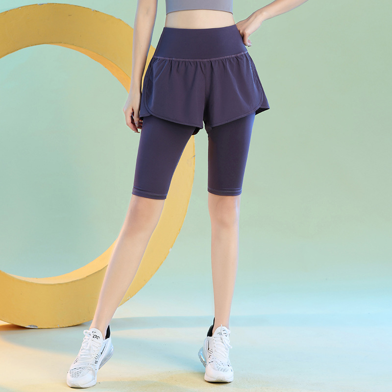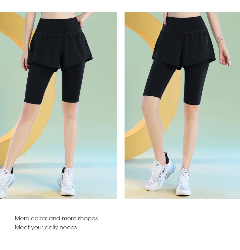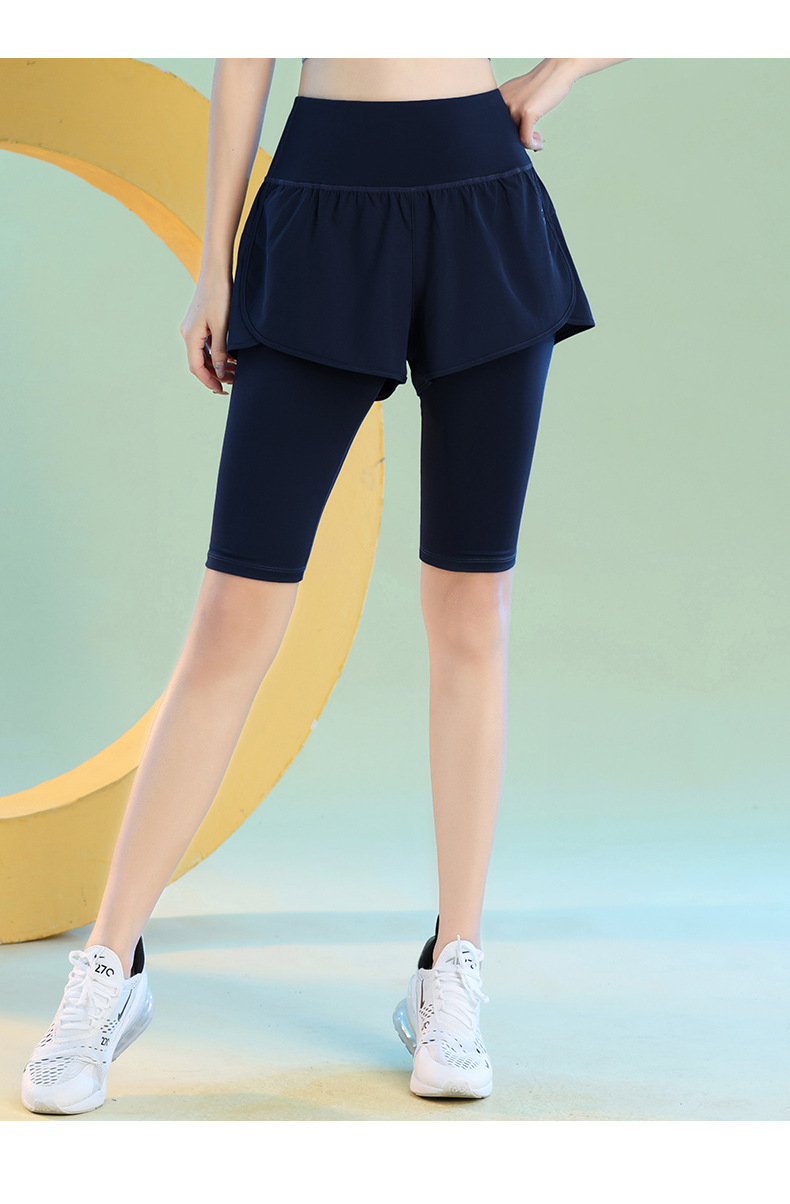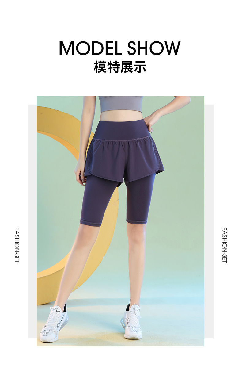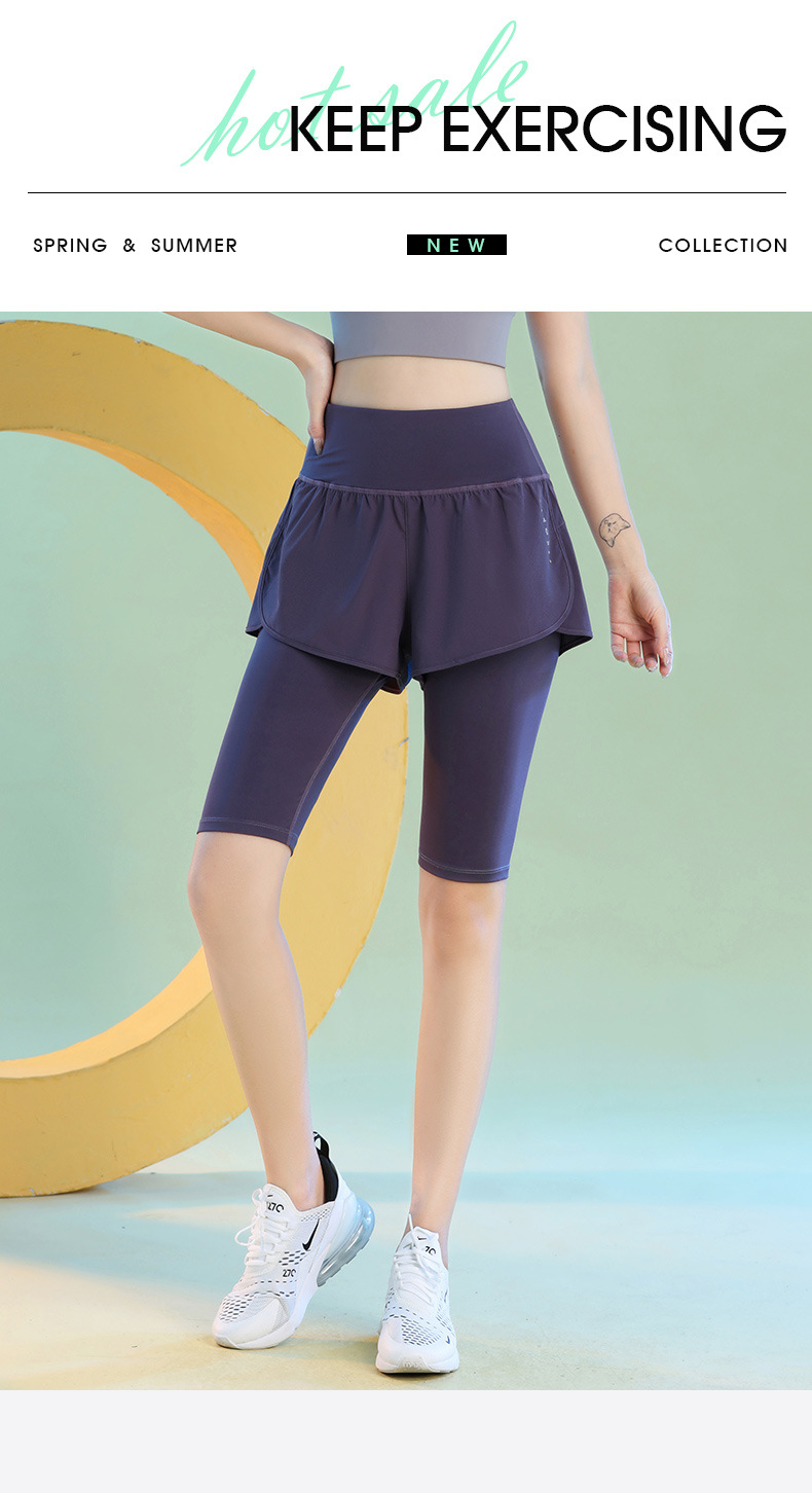 여름 빠른 건조 가짜 투피스 안티 워킹 스포츠 반바지 달리기 마라톤 높은 허리 피트니스 요가 캐주얼 바지 5 점