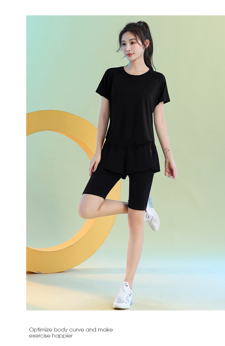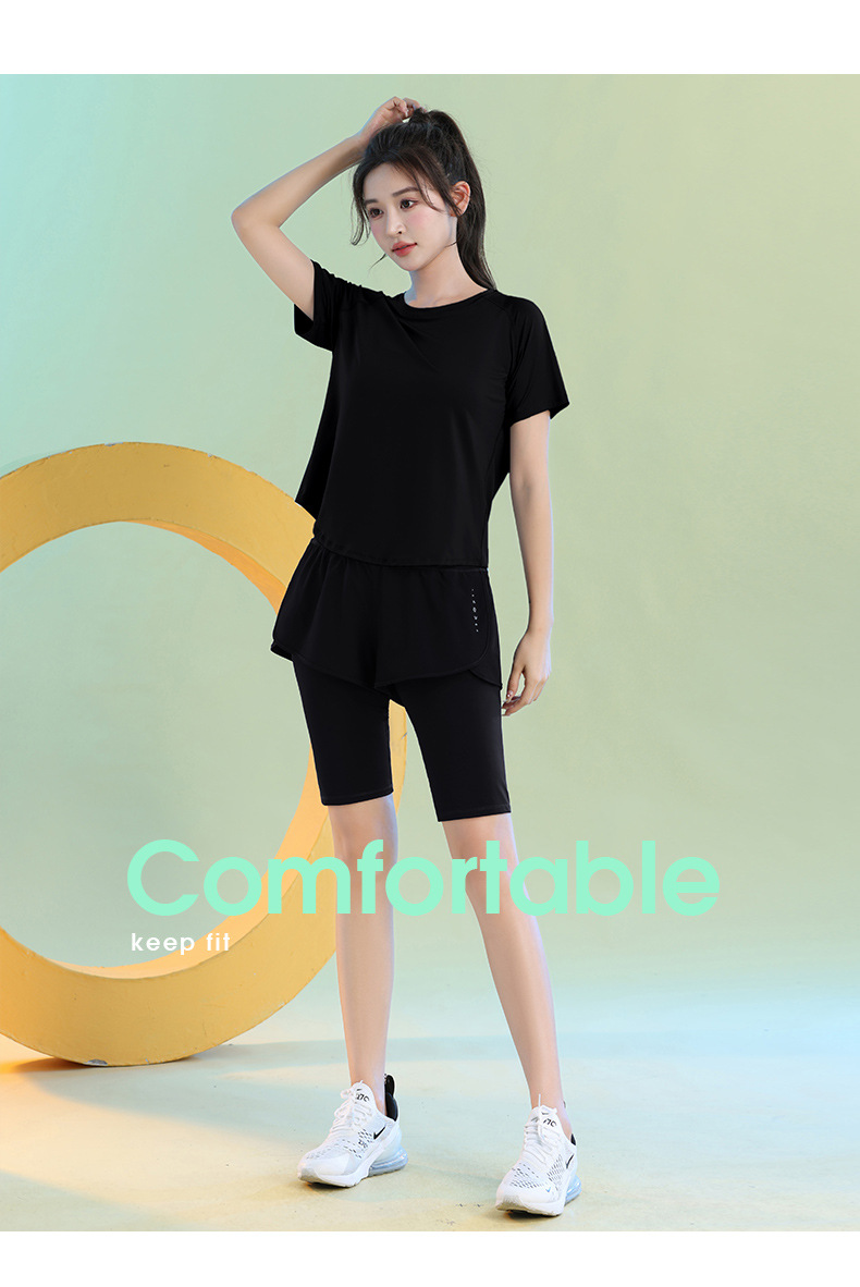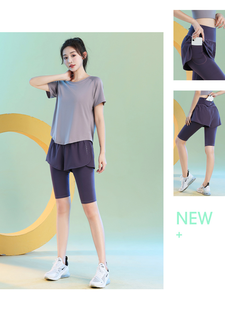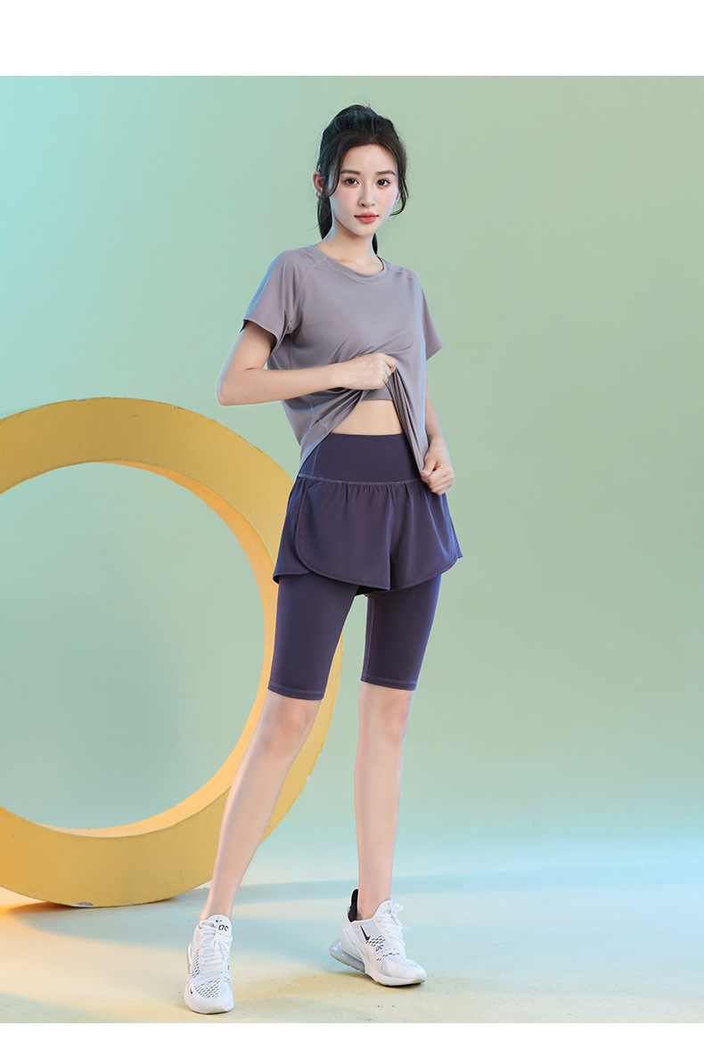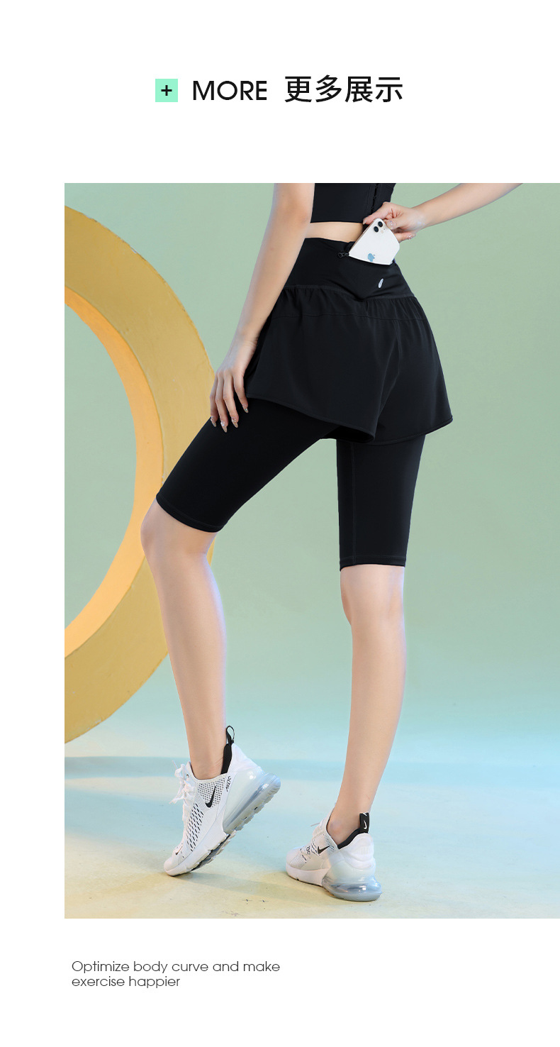여름 빠른 건조 가짜 투피스 안티 워킹 스포츠 반바지 달리기 마라톤 높은 허리 피트니스 요가 캐주얼 바지 5 점