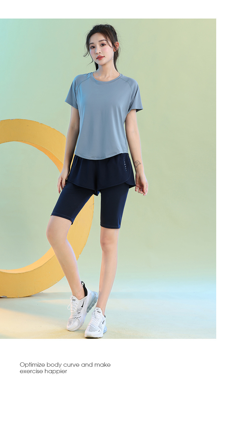 여름 빠른 건조 가짜 투피스 안티 워킹 스포츠 반바지 달리기 마라톤 높은 허리 피트니스 요가 캐주얼 바지 5 점스토어 가기