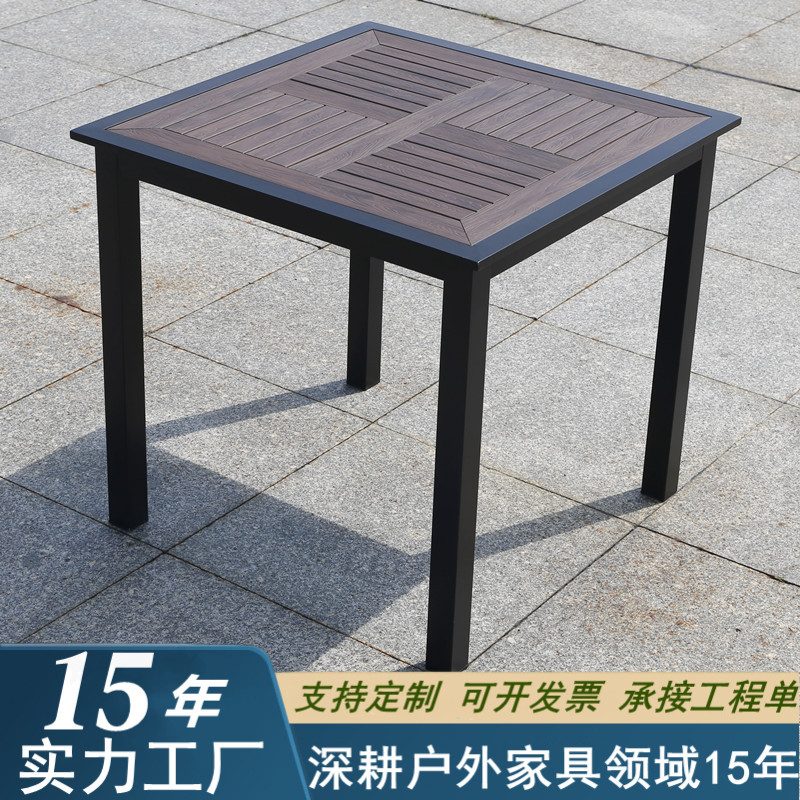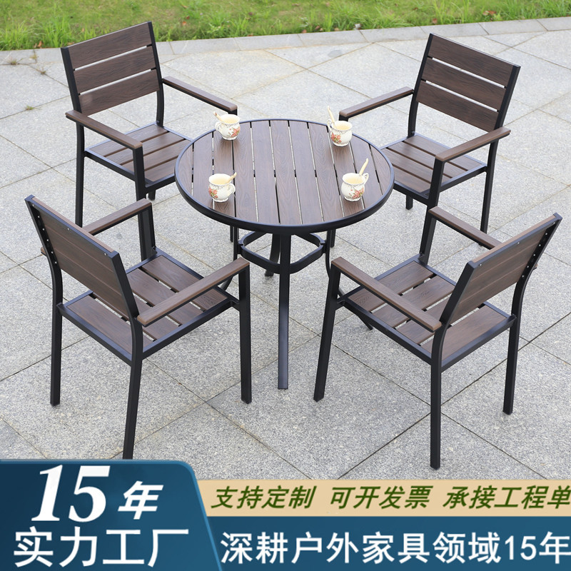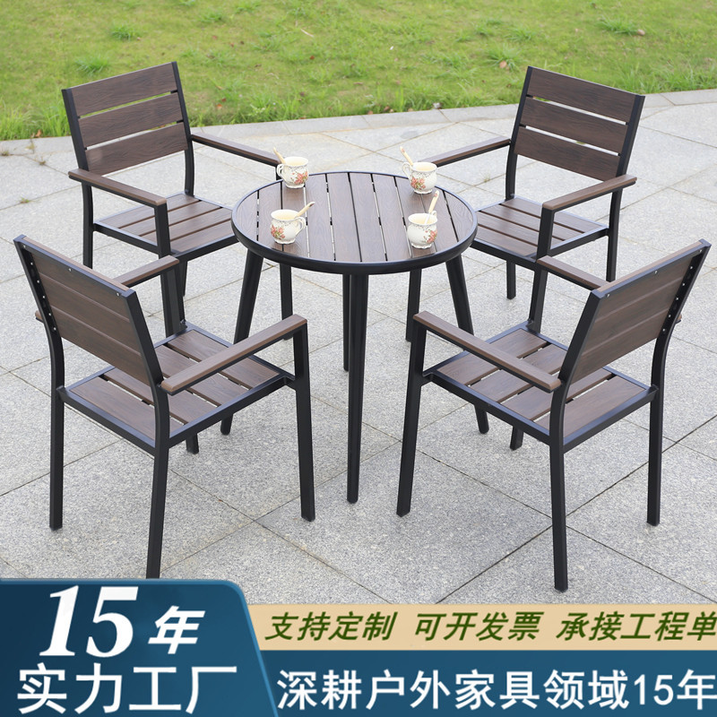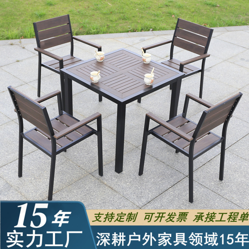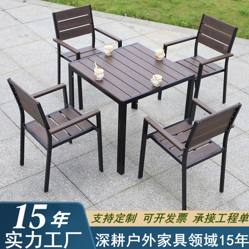 부식 방지 플라스틱 나무 테이블 및 의자 현대 간단한 야외 안뜰 야외 발코니 빌라 테이블 호텔 다이닝 테이블 레저스토어 가기