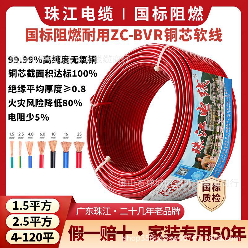 软铜线珠江zC-bvr zc-bvr电线 电线电缆zc-bvr10平方 国标电线 珠江国标电线 电源线 铜芯电源线 电线电缆 珠江电线电缆