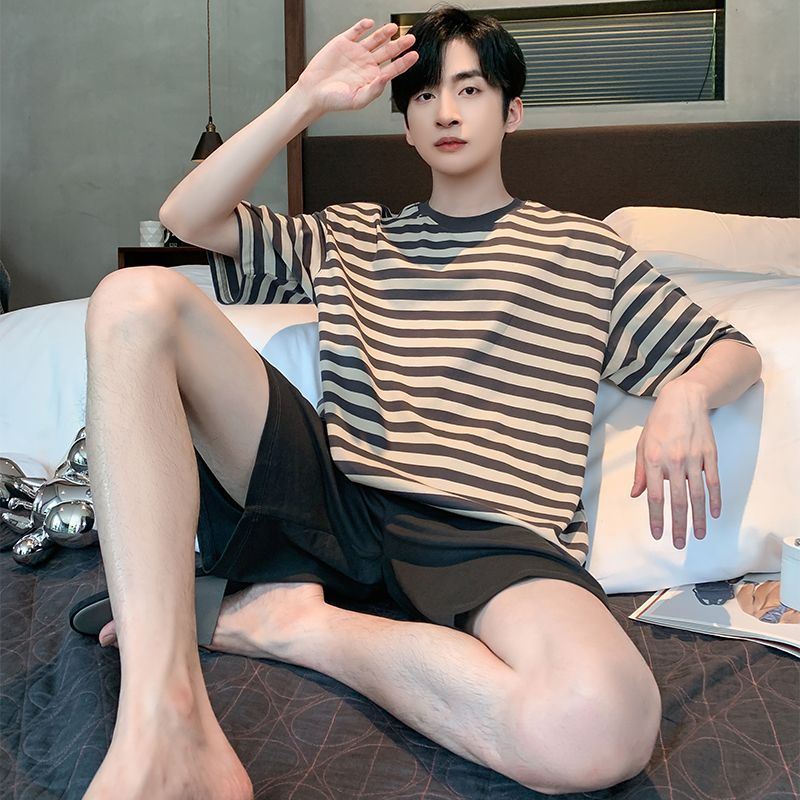 남성용 잠옷 여름 반소매 모달 아이스 실크 얇은 플러스 사이즈 캐주얼 심플 여름 남성용 홈 의류 세트